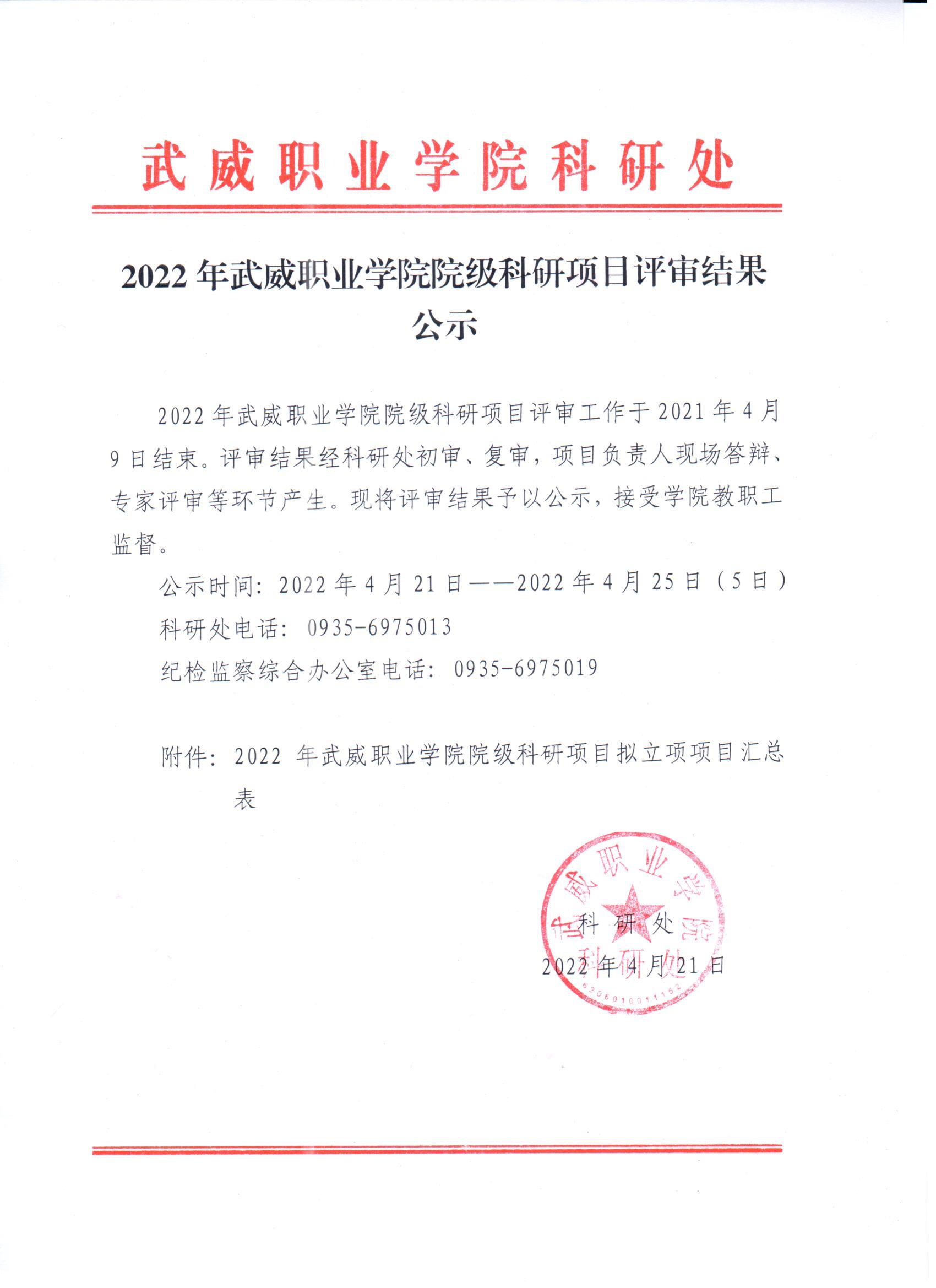 2022年武威職業(yè)學院院級科研項目評審結(jié)果公示