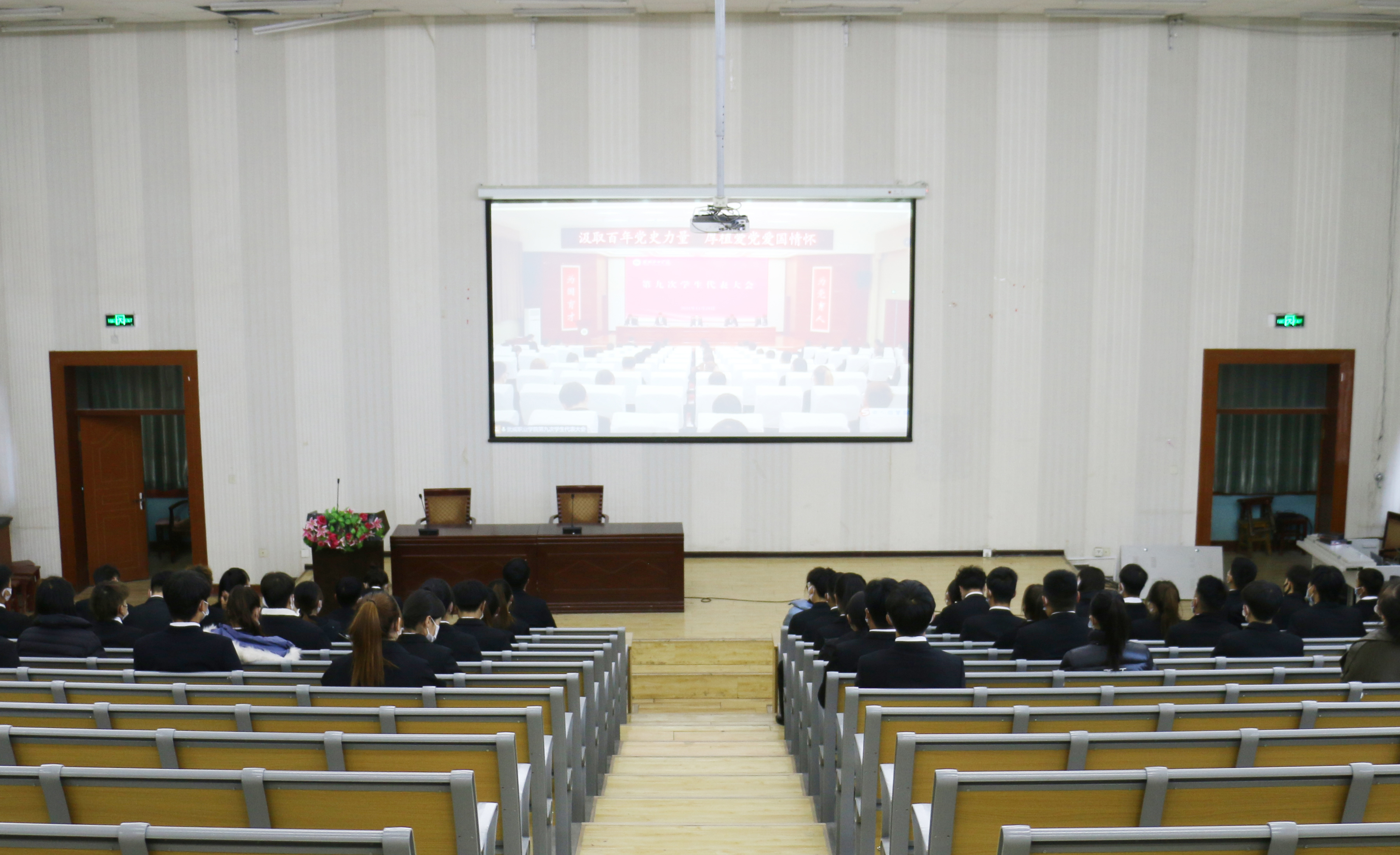 為全力做好學(xué)代會(huì)期間的疫情防控工作,會(huì)議采取“主會(huì)場(chǎng)+分會(huì)場(chǎng)”視頻會(huì)議的形式召開(kāi),主會(huì)場(chǎng)設(shè)在學(xué)生發(fā)展中心菁英廳,分會(huì)場(chǎng)設(shè)在尚德樓正德廳。