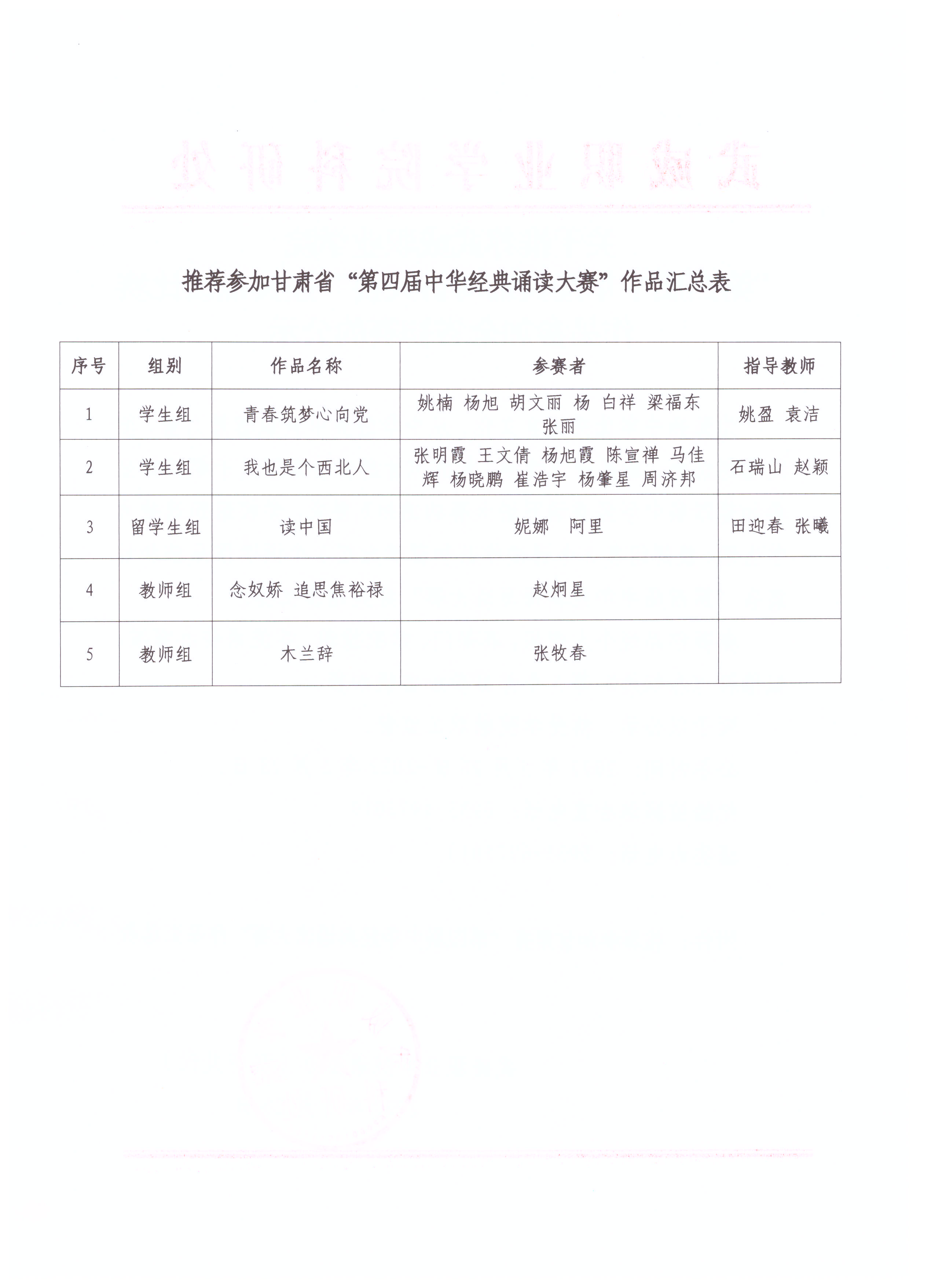 關(guān)于推薦武威職業(yè)學院“第四屆中華經(jīng)典誦寫講大賽”經(jīng)典誦讀比賽作品參加全省初賽的公示