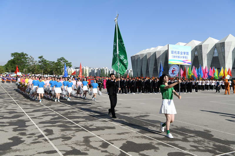 伴隨著激昂的運動員進行曲,國旗隊、彩旗隊、裁判員隊率先走過主席臺,9個代表隊方陣依次通過主席臺,接受檢閱。他們矯健的步伐,嘹亮的口號,整齊的隊伍,昂揚的風貌,充分展示了全校師生良好的精神風貌。