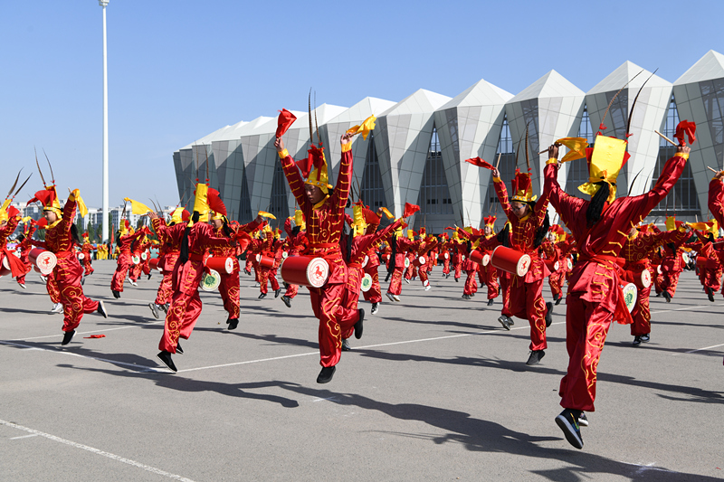 開幕式的最后一個環(huán)節(jié)是團體操表演。宏偉壯觀的國家級非物質文化遺產項目攻鼓子表演,剛柔并濟的武術表演,活力四射的健美操,使人精神振奮,熱情沸騰。一個個精彩的表演贏得了全場一陣陣的掌聲和歡呼聲,為開幕式營造了熱烈的氛圍,充分的展現(xiàn)了新時代大學生的青春風采。