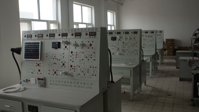 新能源實(shí)訓(xùn)中心建有光伏發(fā)電實(shí)訓(xùn)室和農(nóng)村能源實(shí)訓(xùn)室,可開(kāi)設(shè)光伏發(fā)電模擬實(shí)訓(xùn)、光伏發(fā)電系統(tǒng)原理實(shí)訓(xùn)、風(fēng)光互補(bǔ)發(fā)電實(shí)訓(xùn)、家用熱水器安裝實(shí)訓(xùn)、太陽(yáng)能集熱管性能實(shí)訓(xùn)、太陽(yáng)能輻射觀測(cè)、氣象數(shù)據(jù)測(cè)試、供配電技術(shù)實(shí)訓(xùn)、電力系統(tǒng)機(jī)電保護(hù)實(shí)訓(xùn)、沼氣發(fā)酵等實(shí)訓(xùn)項(xiàng)目,配有二十五臺(tái)計(jì)算機(jī),可進(jìn)行仿真模擬實(shí)驗(yàn)與實(shí)訓(xùn),其中光伏發(fā)電實(shí)訓(xùn)平臺(tái)是由我院與湖北眾友科技實(shí)業(yè)股份有限公司共同開(kāi)發(fā)研制,實(shí)訓(xùn)室設(shè)計(jì)理念先進(jìn)、設(shè)施設(shè)備齊全,達(dá)到了省內(nèi)同類(lèi)高職院校能源類(lèi)專(zhuān)業(yè)的一流水平。