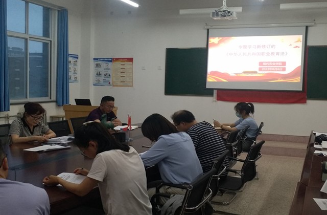 6月6日晚,現(xiàn)代農(nóng)業(yè)學(xué)院(鄉(xiāng)村振興學(xué)院)組織召開(kāi)專題會(huì)議,學(xué)習(xí)新修訂的《中華人民共和國(guó)職業(yè)教育法》(以下簡(jiǎn)稱《職業(yè)教育法》)。會(huì)議由學(xué)院黨總支書(shū)記晏素珍主持,院長(zhǎng)金玉龍及全體教師參加了此次學(xué)習(xí)。