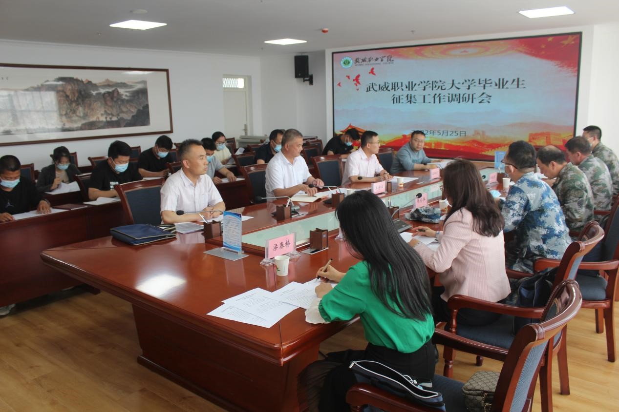 5月25日下午,武威軍分區(qū)大校范玉芳司令員帶領(lǐng)軍地工作組一行6人,來學校調(diào)研指導大學畢業(yè)生征兵工作。學校黨委委員、副校長王守云共同調(diào)研,學校征兵工作站工作人員、輔導員和畢業(yè)班班主任代表參加了匯報會。