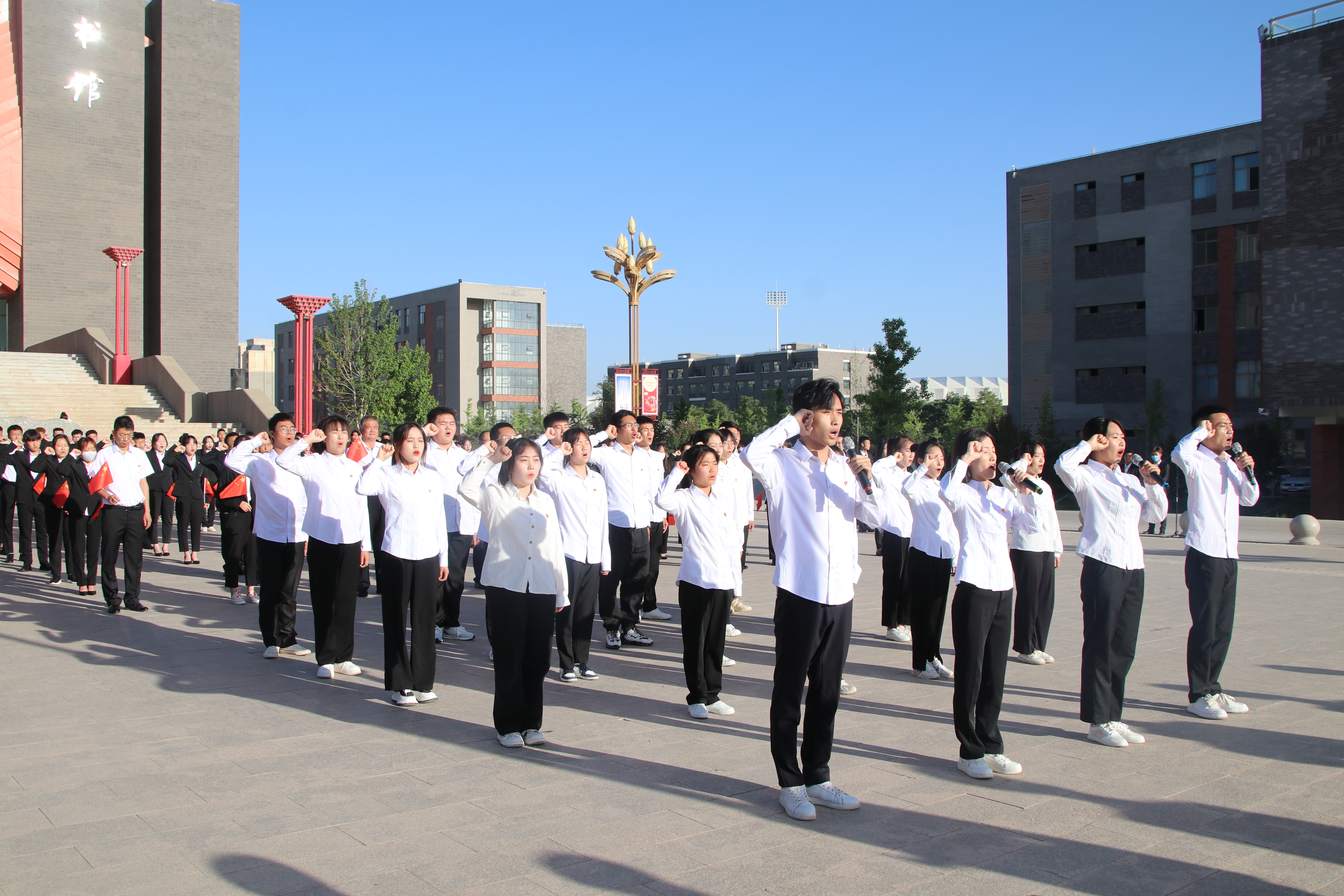 奮斗正當(dāng)時(shí),青春獻(xiàn)給黨!為慶祝中國共產(chǎn)主義青年團(tuán)成立100周年,5月31日早上,校團(tuán)委在圖書館前廣場(chǎng)舉辦“喜迎二十大,永遠(yuǎn)跟黨走,奮進(jìn)新征程”主題團(tuán)日活動(dòng)。學(xué)校黨委委員、副校長王守云出席活動(dòng)并講話,活動(dòng)由校團(tuán)委負(fù)責(zé)人高鵬堂主持。