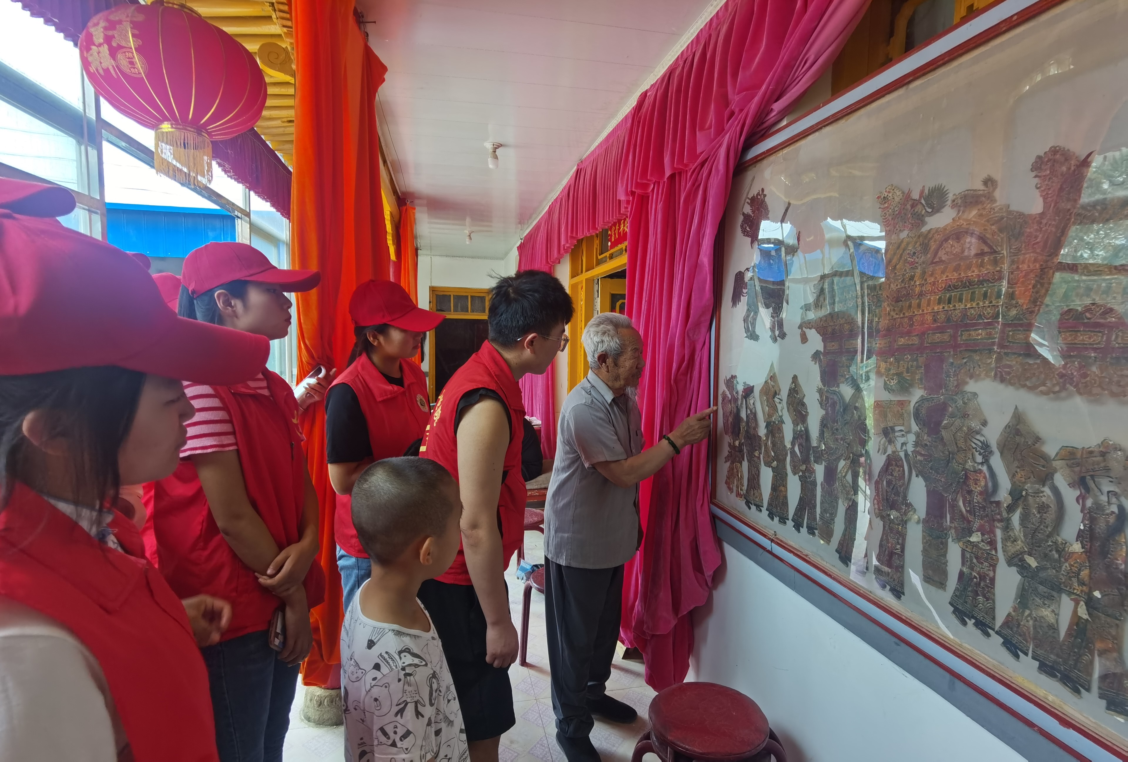 馬登岐老人為隊員們表演了一段經典的皮影劇《黑虎坐臺》,方寸之間有天地,白紗帳前龍虎斗。一盞明燈影出一群紙偶,幾支竹竿撐起一方幕布,浮光掠影之間,所有的故事都在這方小小的幕布中演繹得淋漓盡致。