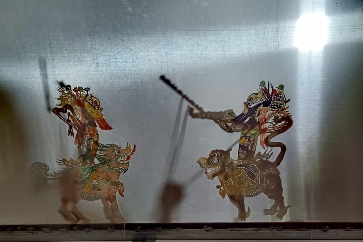 皮影戲俗稱燈影戲,是中國古老的戲劇形式之一。通過傳統老藝人精選上等牛皮,經過刮、磨、洗、刻、著色等二十多道工序,手工雕刻3000余刀而成。隨著樂器伴奏和唱腔配合,一明一暗間,那一張張栩栩如生的皮影在老藝人的操縱下,便成為“一口敘還千古事,雙手對舞百萬兵”意趣盎然的活動藝術形象了。