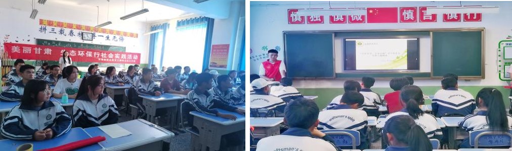 團(tuán)隊(duì)成員在天祝職業(yè)中專教務(wù)處主任張健瑞教師的指引來(lái)到21級(jí)3班,志愿者通過(guò)播放PPT向同學(xué)們宣講了生態(tài)環(huán)保的重要性以及國(guó)家對(duì)于生態(tài)環(huán)保的做出工作部署及法律法規(guī),并且向同學(xué)們進(jìn)行提問(wèn)了生態(tài)環(huán)保知識(shí)、發(fā)放了調(diào)查問(wèn)卷。