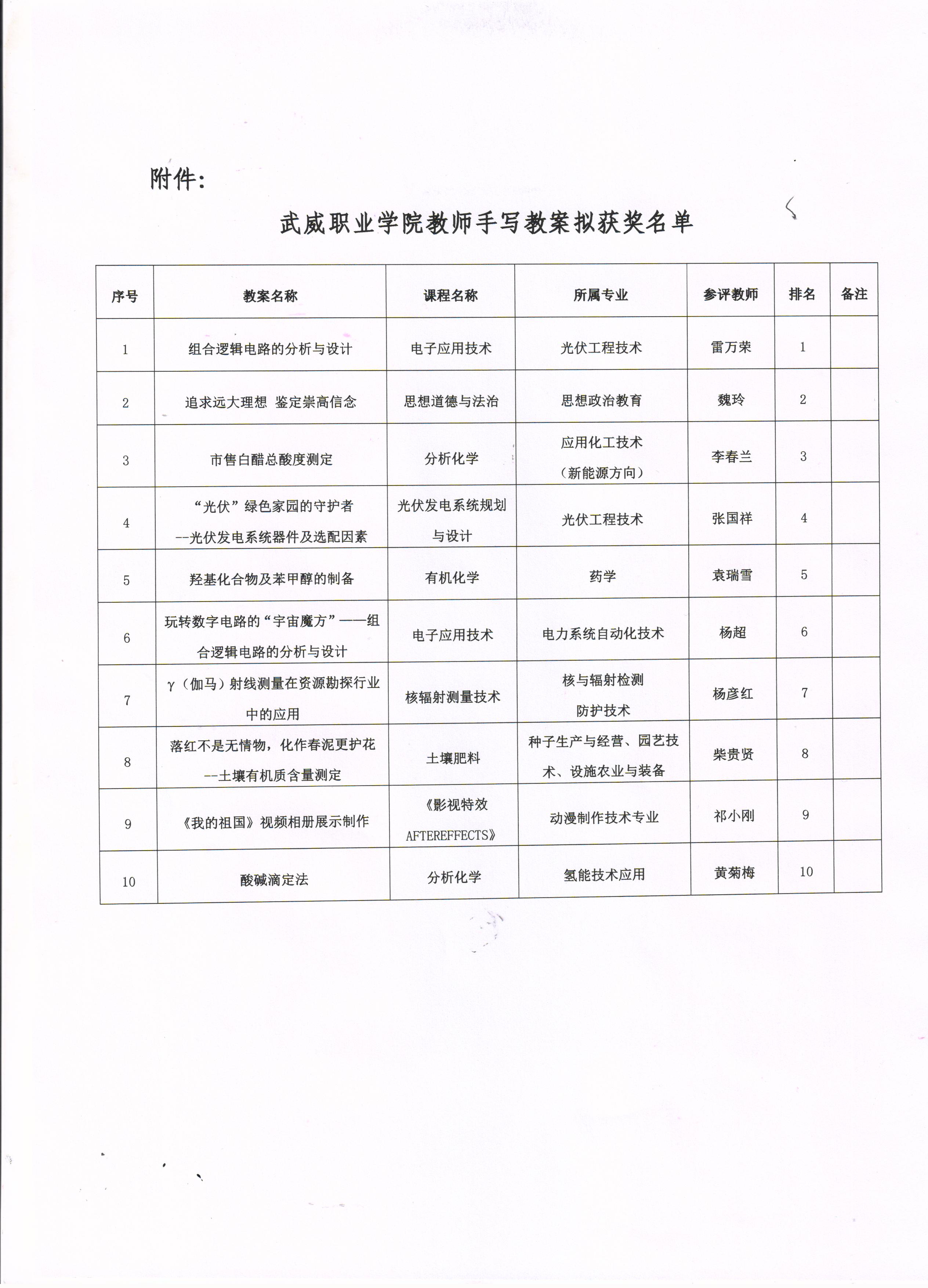 關于教師手寫教案打比賽評選結果的公示