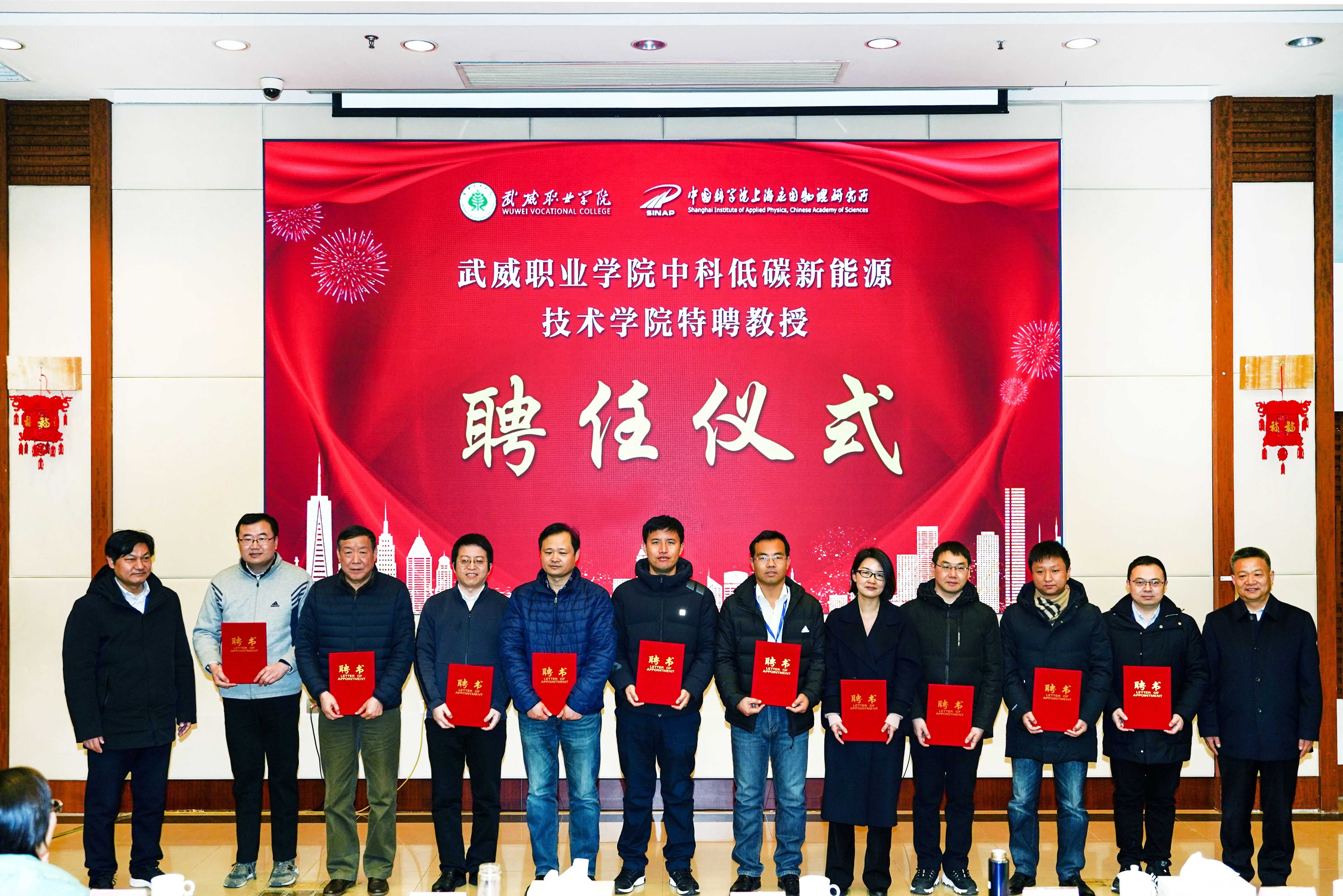 ??2月20日上午,學(xué)院領(lǐng)導(dǎo)前往中國科學(xué)院上海應(yīng)用物理研究所看望慰問武威職業(yè)學(xué)院中科低碳新能源技術(shù)學(xué)院特聘教授代表,并在應(yīng)物所嘉定園區(qū)舉行學(xué)院中科低碳新能源技術(shù)學(xué)院續(xù)聘特聘教授聘任儀式。上海應(yīng)用物理研究所所長戴志敏、學(xué)院黨委書記、院長趙明、黨委副書記翟存祥等出席儀式。
