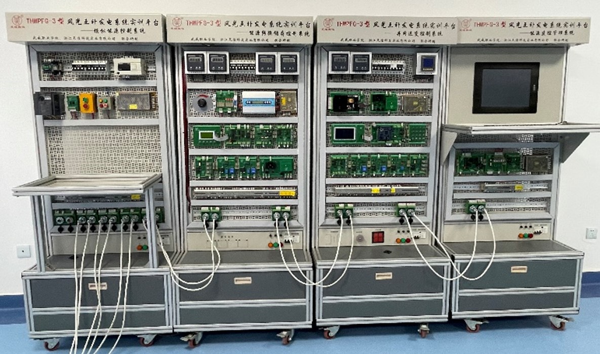 本實訓室擁有風光互補發(fā)電實訓系統(tǒng)1套,其主要由光伏供電裝置、光伏供電系統(tǒng)、風力供電裝置、風力供電系統(tǒng)、模擬能源控制系統(tǒng)、能源轉(zhuǎn)換儲存控制系統(tǒng)、并網(wǎng)逆變控制系統(tǒng)、能源監(jiān)控管理系統(tǒng)組成,各裝置和系統(tǒng)具有獨立的功能,可以組合成光伏發(fā)電實訓系統(tǒng)、風力發(fā)電實訓系統(tǒng)。本實訓室主要服務于光伏工程技術(shù)及相近專業(yè)開設的光伏發(fā)電技術(shù)分析與應用、光伏材料的加工與檢測、光伏電池的生產(chǎn)加工與維護、光伏控制器拆裝與維修、光伏器件的組裝與維護等課程。