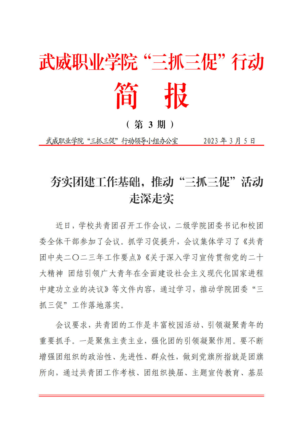 簡報第3期:夯實團建工作基礎(chǔ),推動“三抓三促”活動走深走實