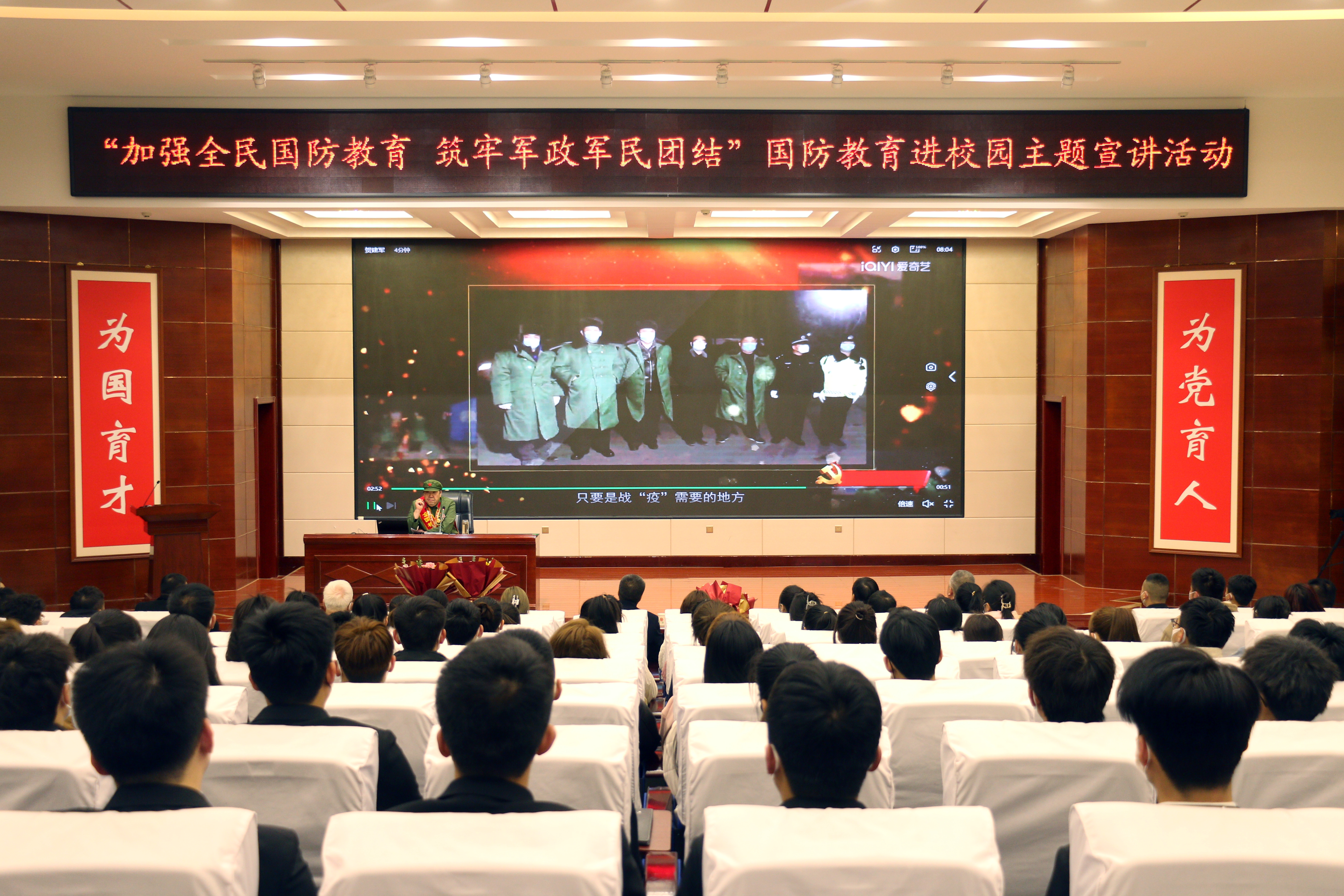 3月3日上午,由市委宣傳部、市退役軍人事務局、武威軍分區(qū)政治工作處主辦的“國防教育進校園”主題宣講活動在我校學生發(fā)展中心菁英廳舉辦。武威市退役軍人事務局副局長楊秉雄,學校黨委委員、副校長王守云出席活動?;顒佑蓪W生工作處負責人高鵬堂主持,師生代表200余人聆聽了宣講。