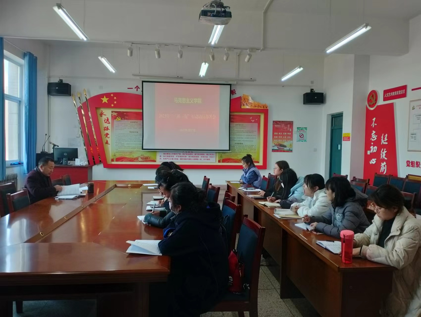 會議傳達學(xué)習(xí)了《武威職業(yè)學(xué)院“抓學(xué)習(xí)促提升抓執(zhí)行促落實抓效能促發(fā)展”行動實施方案》文件精神,全面梳理了馬克思主義學(xué)院在“三抓三促”行動中存在的具體問題,并結(jié)合學(xué)院實際,對2023年重點工作進行了安排部署。
