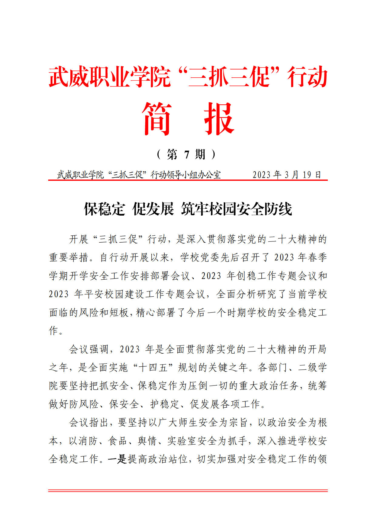 簡(jiǎn)報(bào)第7期:保穩(wěn)定 促發(fā)展 筑牢校園安全防線