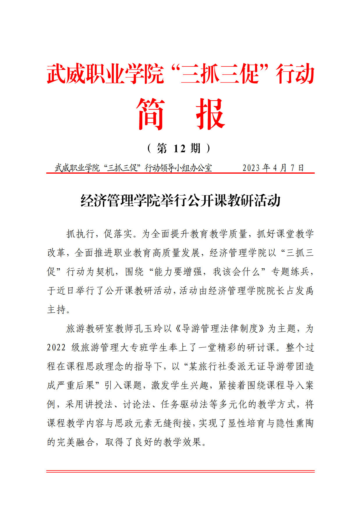 簡報第12期:經濟管理學院舉行公開課教研活動