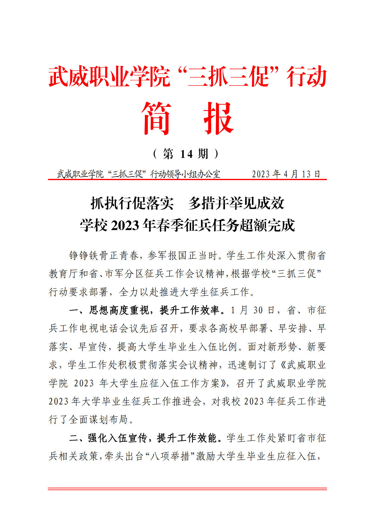 簡報(bào)第14期:抓執(zhí)行促落實(shí) 多措并舉見成效 學(xué)校2023年春季征兵任務(wù)超額完成
