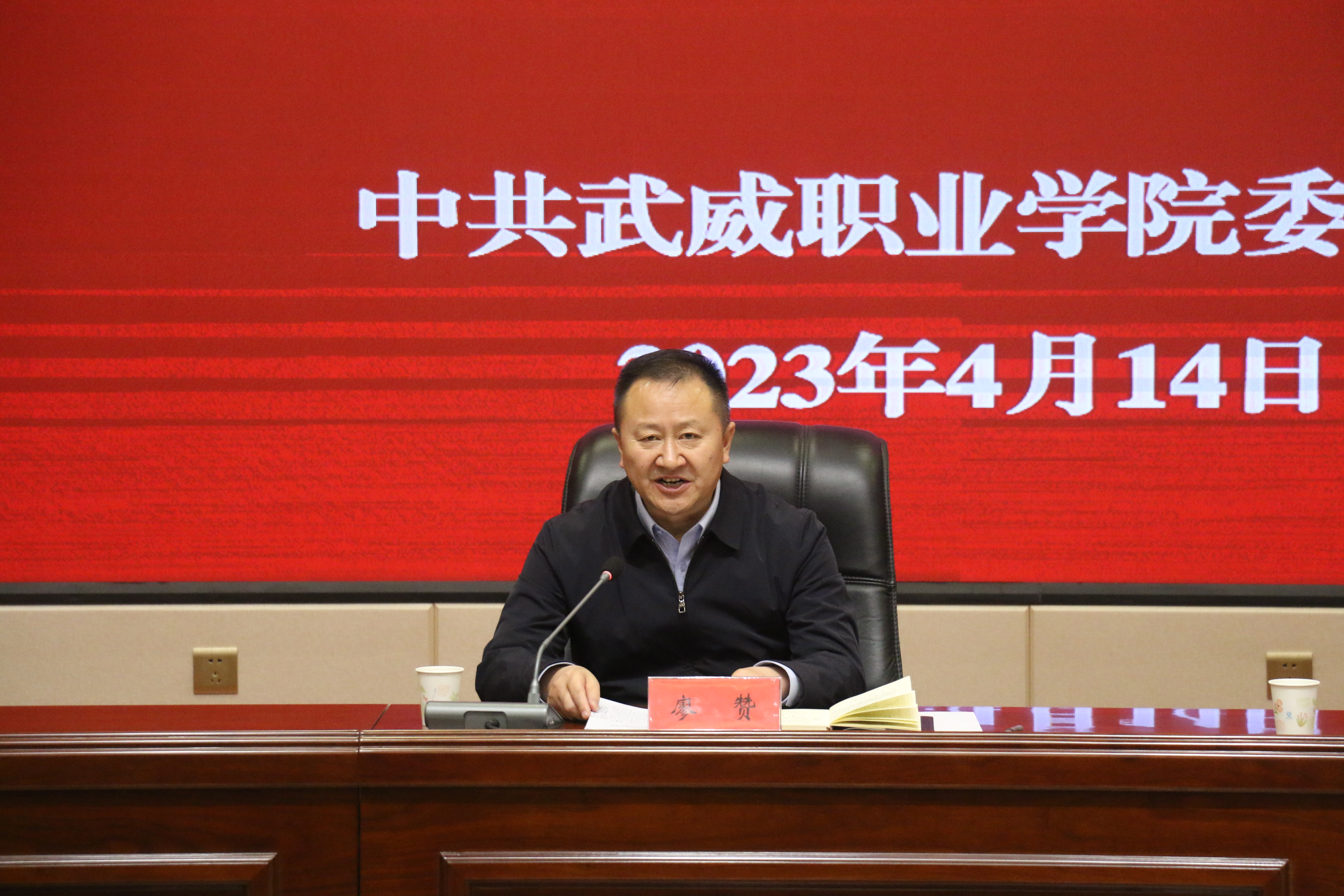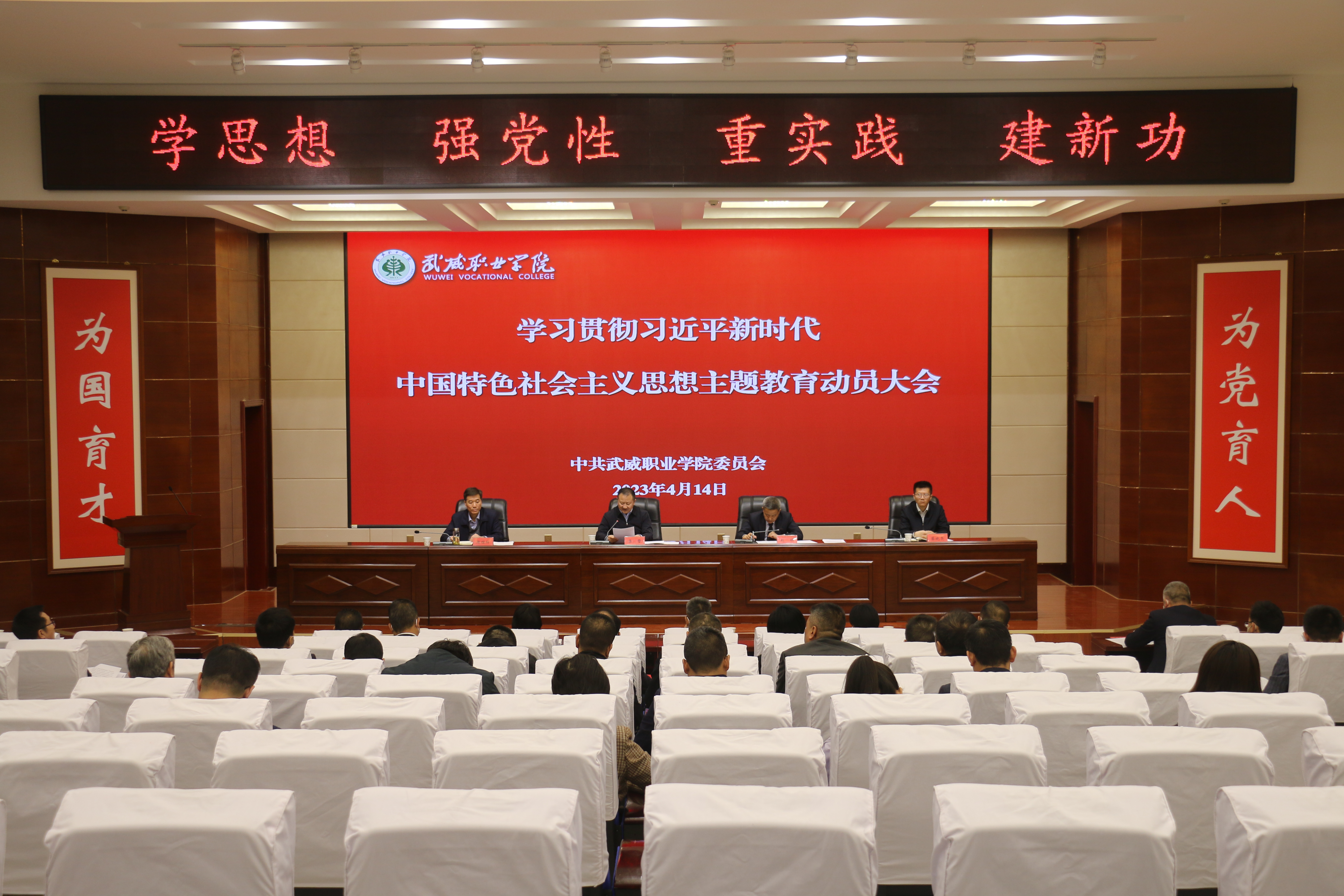4月14日下午,學(xué)校召開學(xué)習(xí)貫徹習(xí)近平新時(shí)代中國特色社會(huì)主義思想主題教育動(dòng)員部署會(huì)議。省委第十巡回指導(dǎo)組副組長(zhǎng)、省景泰川電力提灌水資源利用中心黨委委員、副主任廖贊到會(huì)指導(dǎo)并講話。學(xué)校黨委書記、校長(zhǎng)、主題教育領(lǐng)導(dǎo)小組組長(zhǎng)趙明主持會(huì)議,傳達(dá)中央主題教育工作會(huì)議精神和省委主題教育動(dòng)員部署會(huì)議精神并作動(dòng)員講話。
