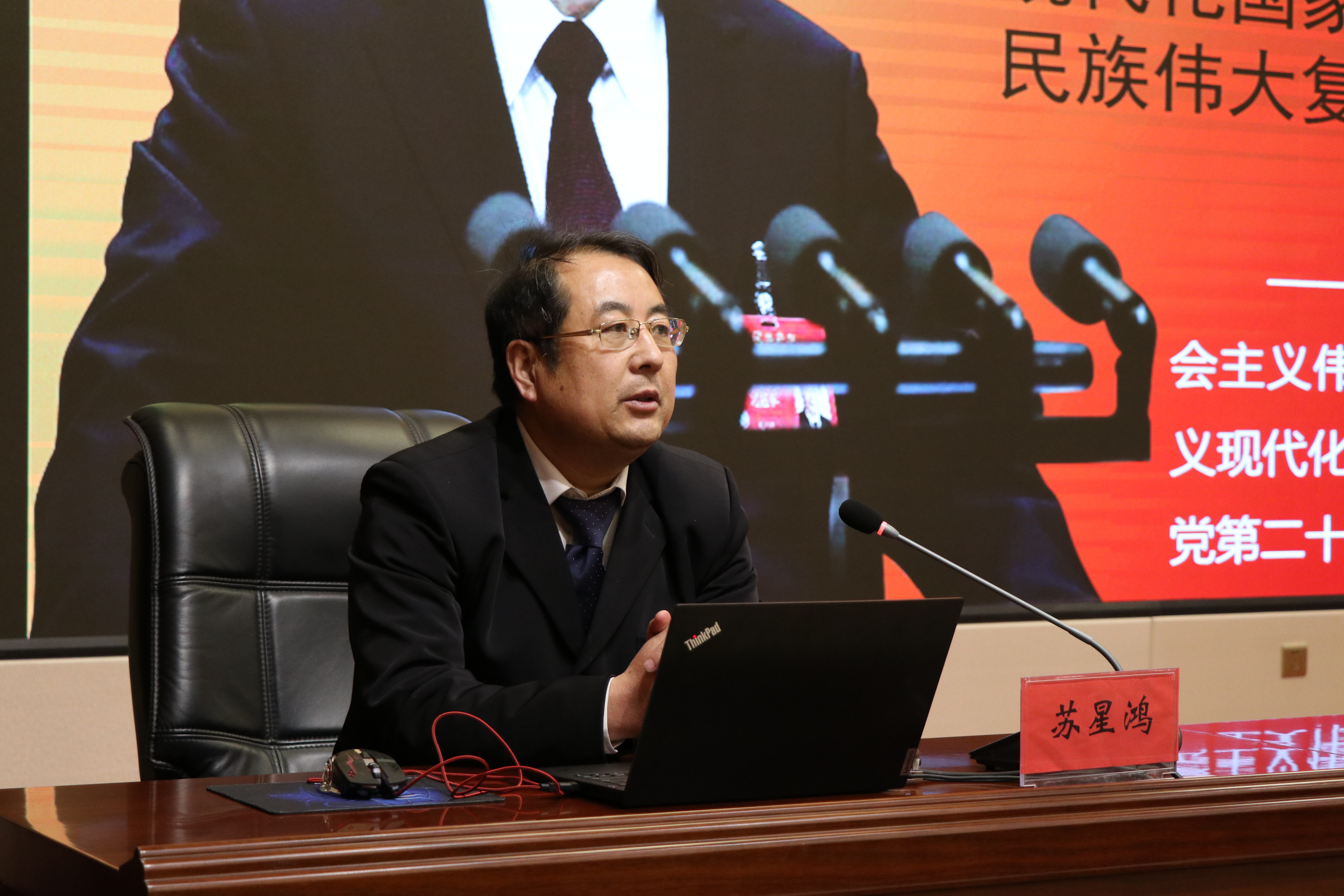 蘇星鴻教授以《深刻把握黨的二十大精神的核心要義》為題,從黨的二十大召開的歷史背景和重大意義、過(guò)去五年的工作和新時(shí)代十年的偉大變革、開辟馬克思主義中國(guó)化時(shí)代化新境界的科學(xué)內(nèi)涵、新時(shí)代新征程中國(guó)共產(chǎn)黨使命任務(wù)的豐富內(nèi)涵、以黨的自我革命推進(jìn)偉大的社會(huì)革命的實(shí)踐意義和“五個(gè)必由之路”的戰(zhàn)略意義六個(gè)方面進(jìn)行了深入淺出的闡述,對(duì)師生深刻理解黨的二十大精神具有很強(qiáng)的啟發(fā)意義。