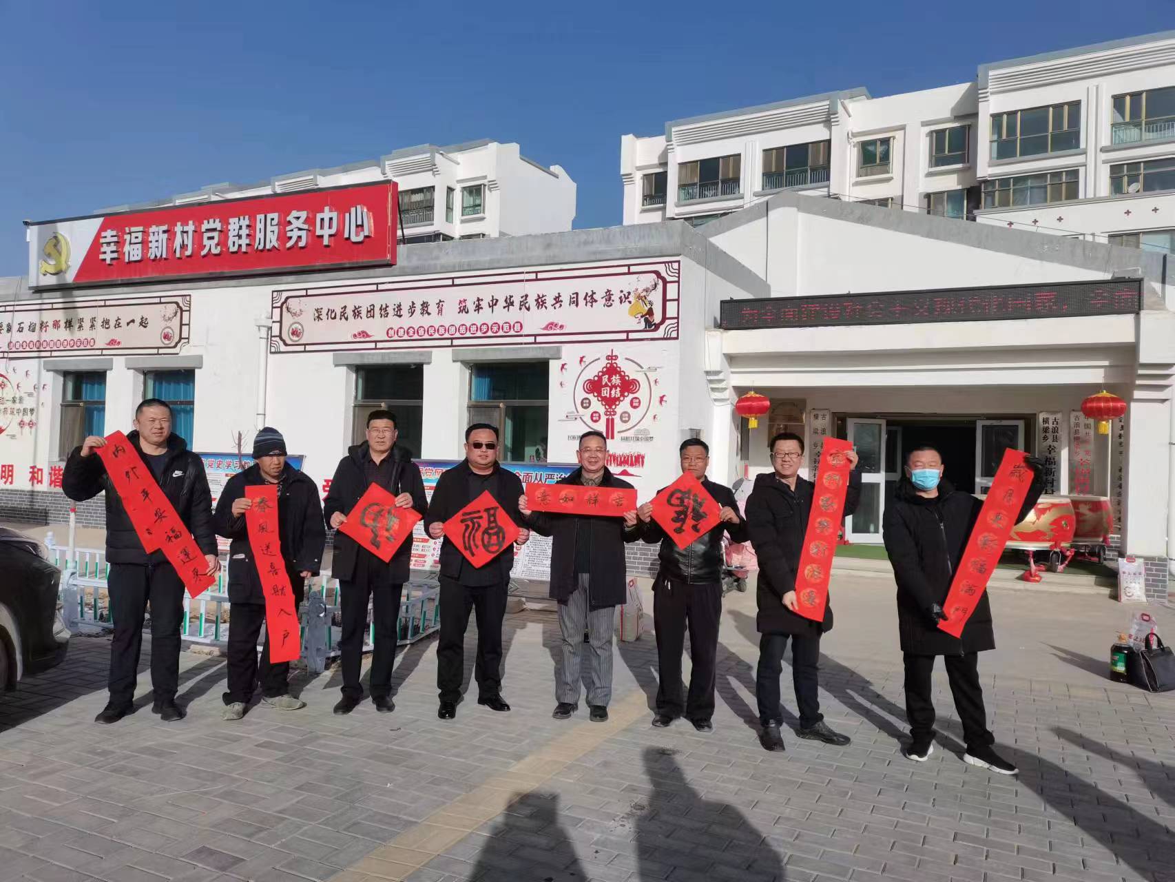 會后,志愿者為村民送上了春聯(lián)、福字?!昂眠\(yùn)常來添富貴,吉星高照永平安”“春歸大地人間暖,福降神州喜臨門”……一副副春聯(lián)承載著大家對新年的美好祝福,對未來幸福生活的期許和向往。村民群眾結(jié)伴而來,仔細(xì)挑選每一副春聯(lián)。大家拿到散發(fā)淡淡墨香、帶著濃濃祝福的大紅春聯(lián)和福字,臉上洋溢著幸福的笑容。此次活動共送出1400副春聯(lián),3000個福字,將新年祝福送到千家萬戶,不僅弘揚(yáng)優(yōu)秀傳統(tǒng)文化,也營造了濃濃的新春氣氛,增進(jìn)村民間的情感。