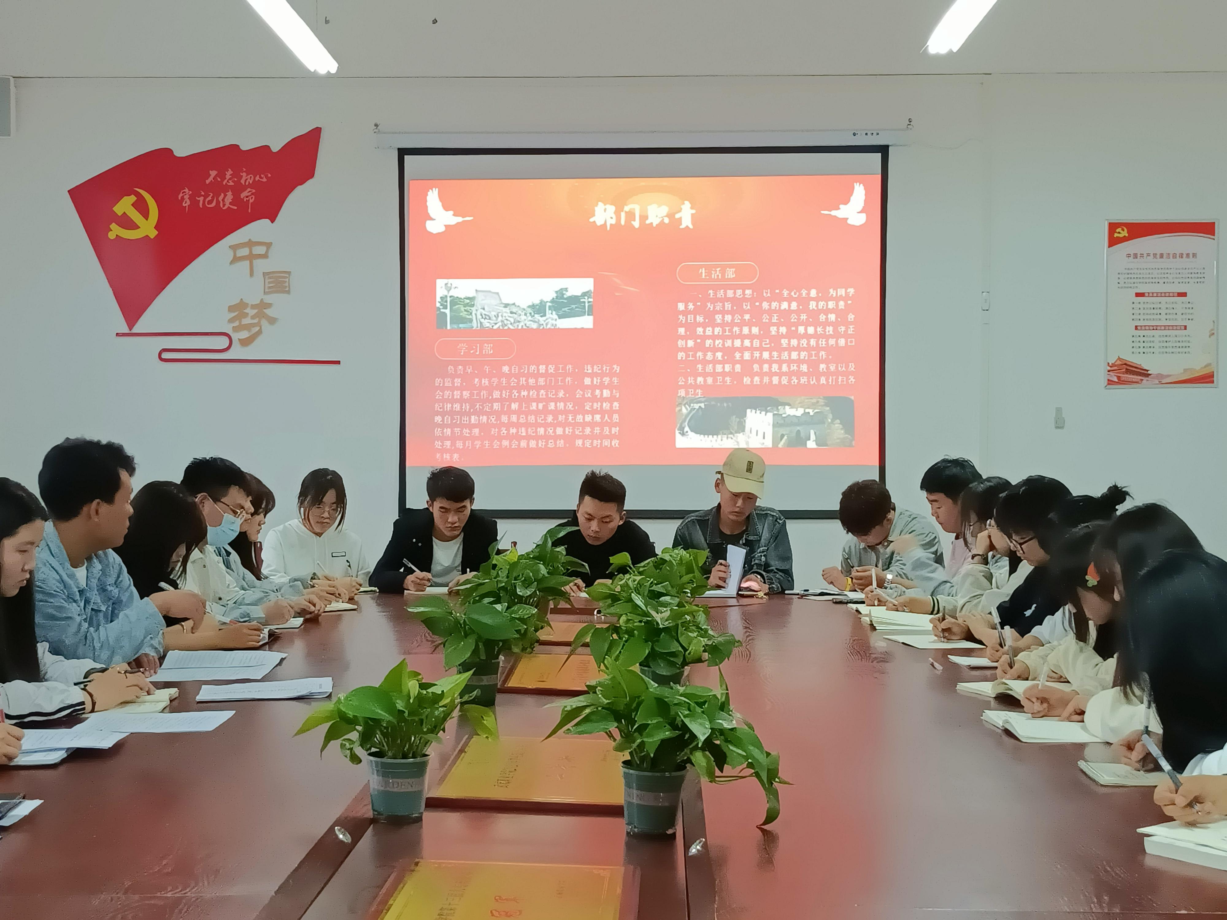 ? ? ? ?首先,會(huì)議第一項(xiàng)由李停強(qiáng)進(jìn)行講述學(xué)生會(huì)的職責(zé)與義務(wù),為促進(jìn)各部門的團(tuán)結(jié),建造學(xué)院團(tuán)學(xué)干部團(tuán)結(jié)向上的和諧氛圍,本次會(huì)議是希望提高各個(gè)團(tuán)學(xué)干部的思想素質(zhì),組織協(xié)調(diào)能力,責(zé)任服務(wù)意識(shí)都能貫徹到底,我們是為了更好的服務(wù)同學(xué),所以作風(fēng)等一定要端正。