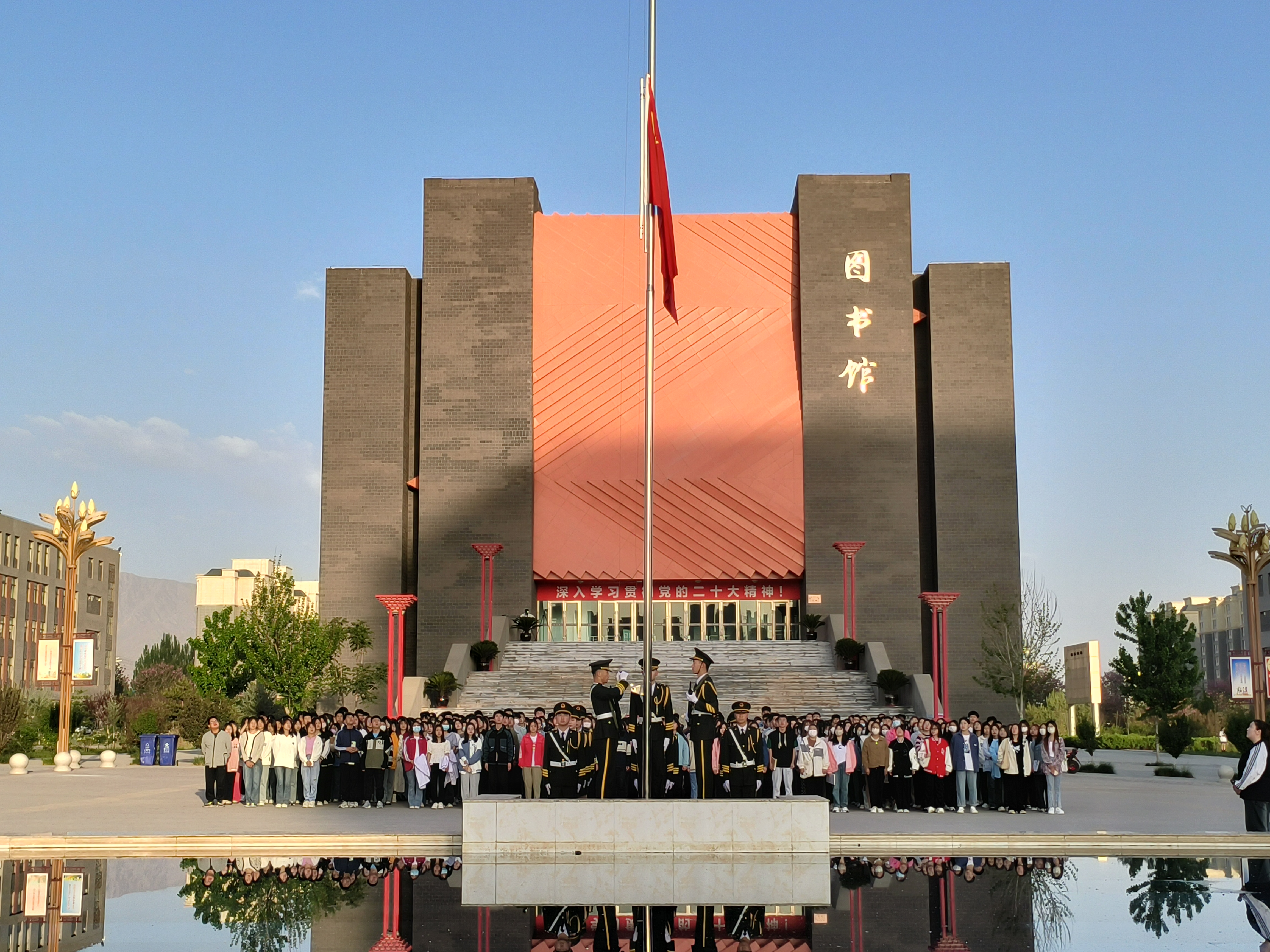? ? ? ?五月如歌,萬(wàn)物齊詠,沐浴著夏日清晨的暖陽(yáng),2023年5月15日,藥學(xué)院舉行第十二周的升旗儀式。本次升旗儀式在圖書館前國(guó)旗下進(jìn)行,由學(xué)生會(huì)主席尚寶萍同學(xué)主持。