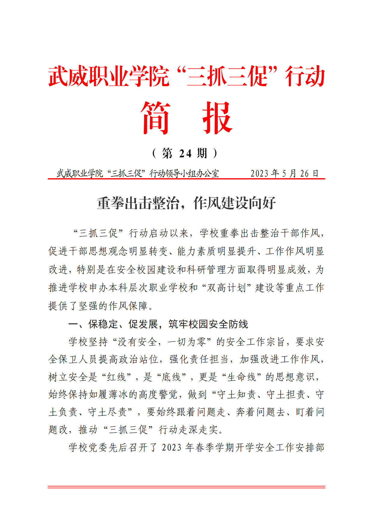 簡報第23期:解決師生群眾急難愁盼 推動“三抓三促”行動走深走實