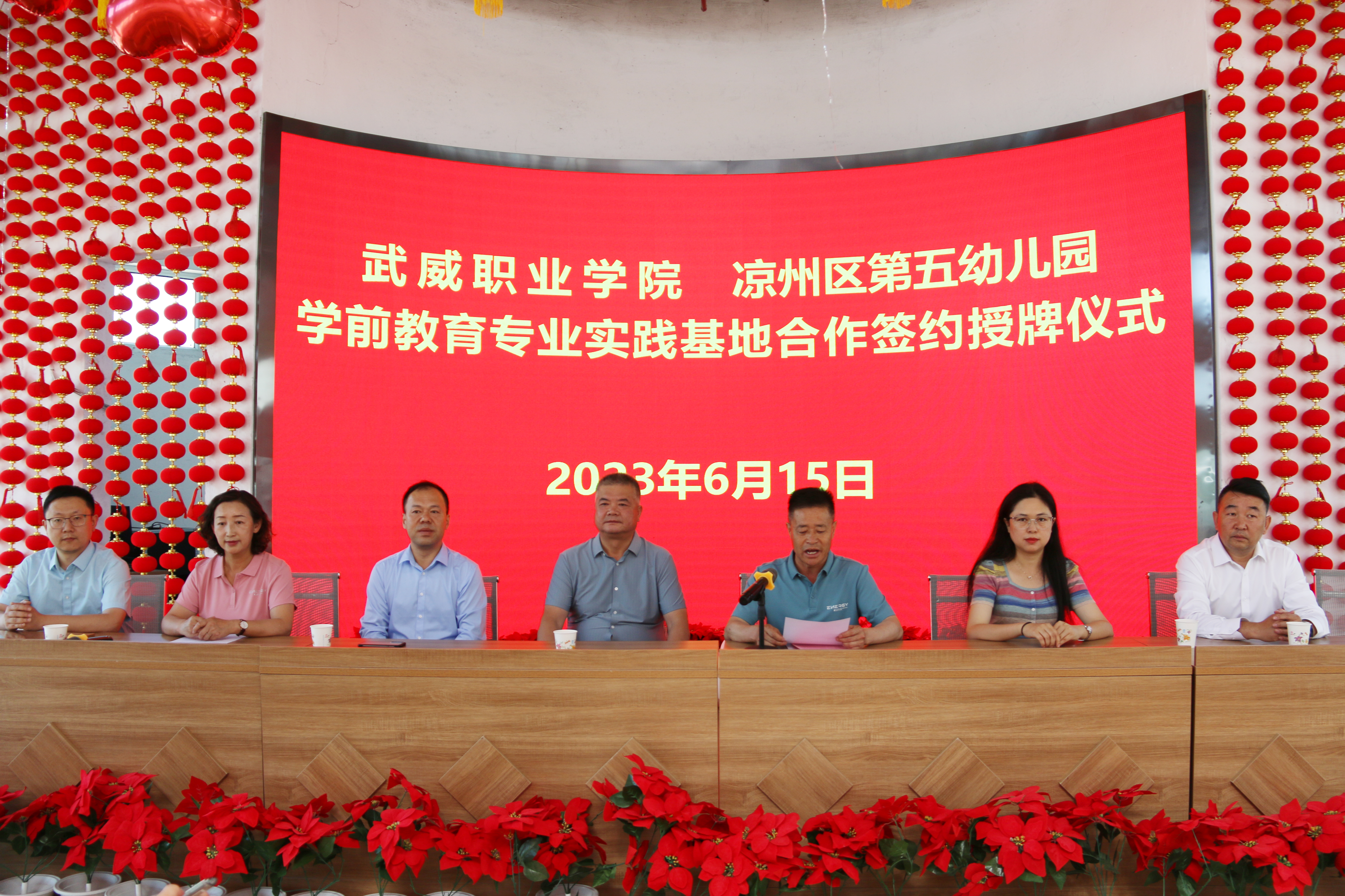 6月15日,武威職業(yè)學(xué)院學(xué)前教育專業(yè)實(shí)踐基地授牌儀式分別在武威市第二實(shí)驗(yàn)幼兒園、涼州區(qū)第五幼兒園舉行。學(xué)校黨委委員、副校長王守云,武威市第二實(shí)驗(yàn)幼兒園園長羅亞莉,涼州區(qū)第五幼兒園園長張俊山出席授牌儀式。藝術(shù)與教育學(xué)院教師代表,市區(qū)幼兒園領(lǐng)導(dǎo)班子成員及部分教師參加授牌儀式。