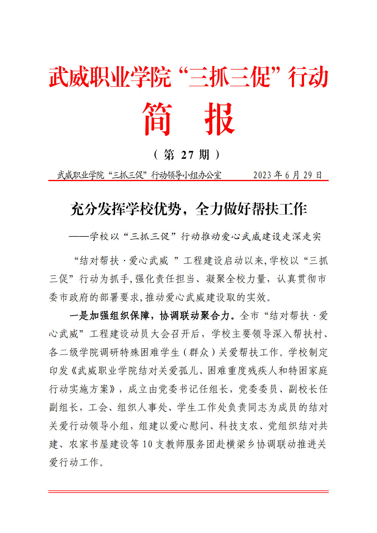 簡報(bào)第27期:充分發(fā)揮學(xué)校優(yōu)勢,全力做好幫扶工作——學(xué)校以“三抓三促”行動推動愛心武威建設(shè)走深走實(shí)