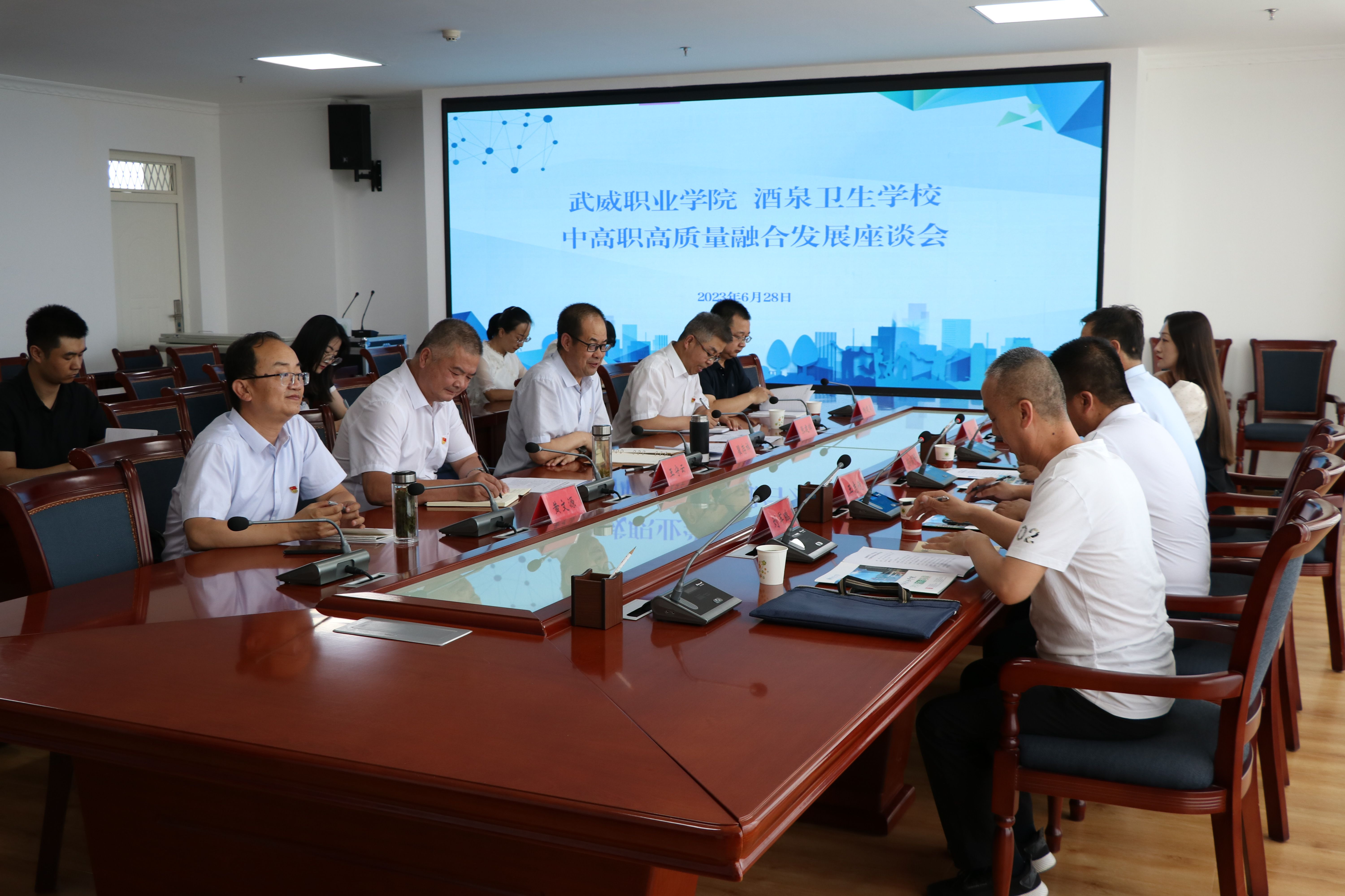 6月28日下午,酒泉衛(wèi)生學校黨委委員、副校長孫俊峰帶領教務科、招生辦公室負責人來我??疾旖涣?。雙方就進一步加強醫(yī)藥衛(wèi)生類專業(yè)學生貫通培養(yǎng)工作在能源樓811會議室開展交流座談。學校黨委副書記翟存祥,黨委委員、副校長王守云,護理學院負責人張建輝,藥學院負責人楊建美,醫(yī)學技術(shù)學院負責人黃文源及教師代表參加會議。會議由翟存祥同志主持。