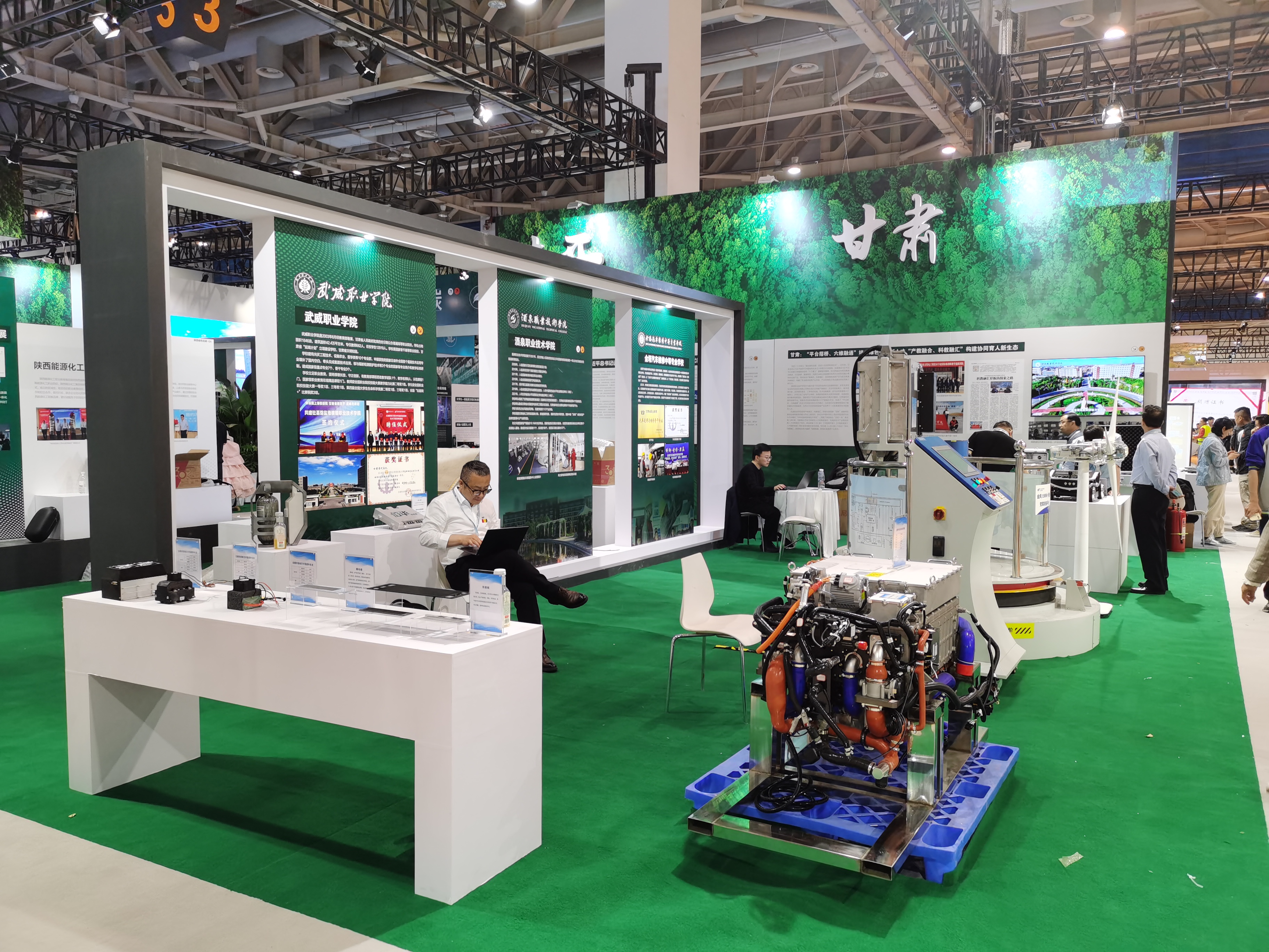 學(xué)校的成果展示獲得了眾多專家和觀眾、媒體的認可和贊譽,充分展示了我校在綠色低碳、科教融匯方面的創(chuàng)新成就。甘肅省教育廳廳長張國珍、職成處處長令軍輝蒞臨展位,聽取參展作品介紹,并給予高度評價。