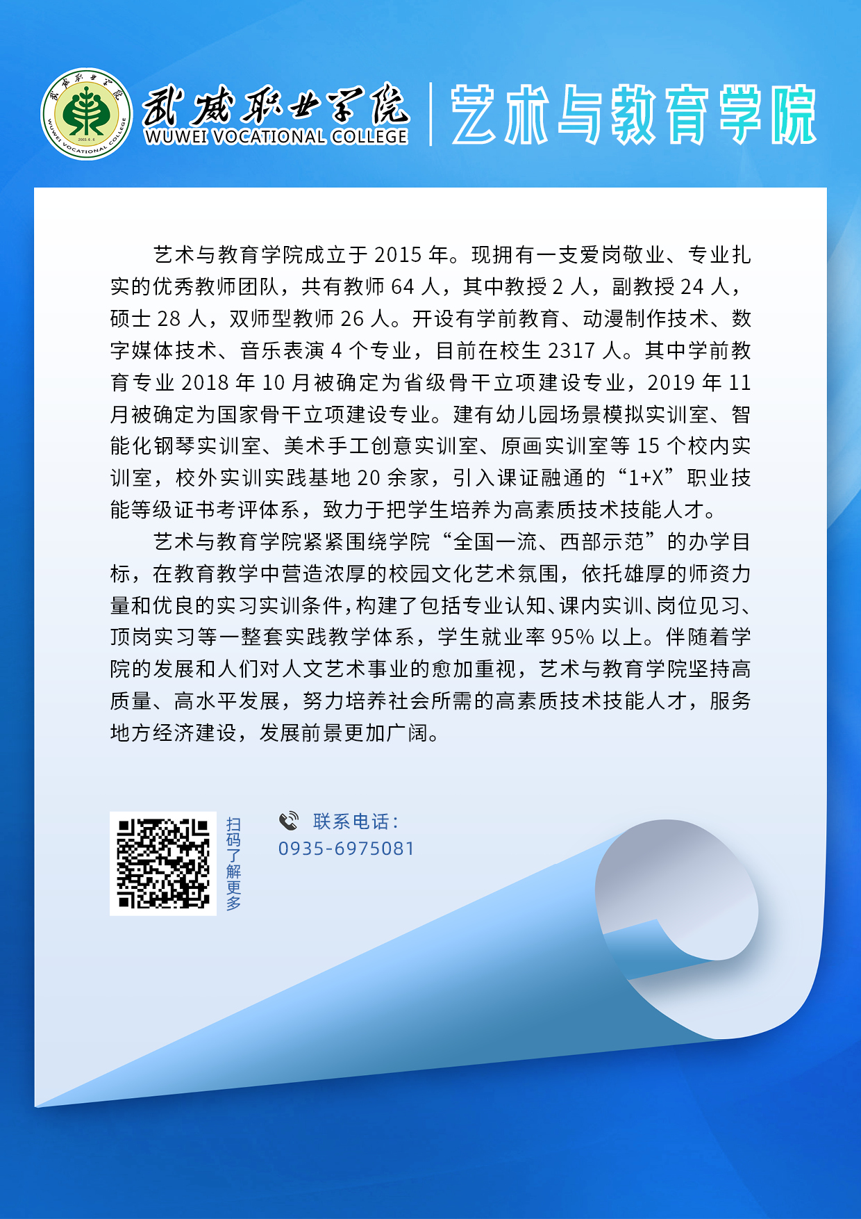 武威職業(yè)學(xué)院二級(jí)學(xué)院專業(yè)簡(jiǎn)介丨藝術(shù)與教育學(xué)院