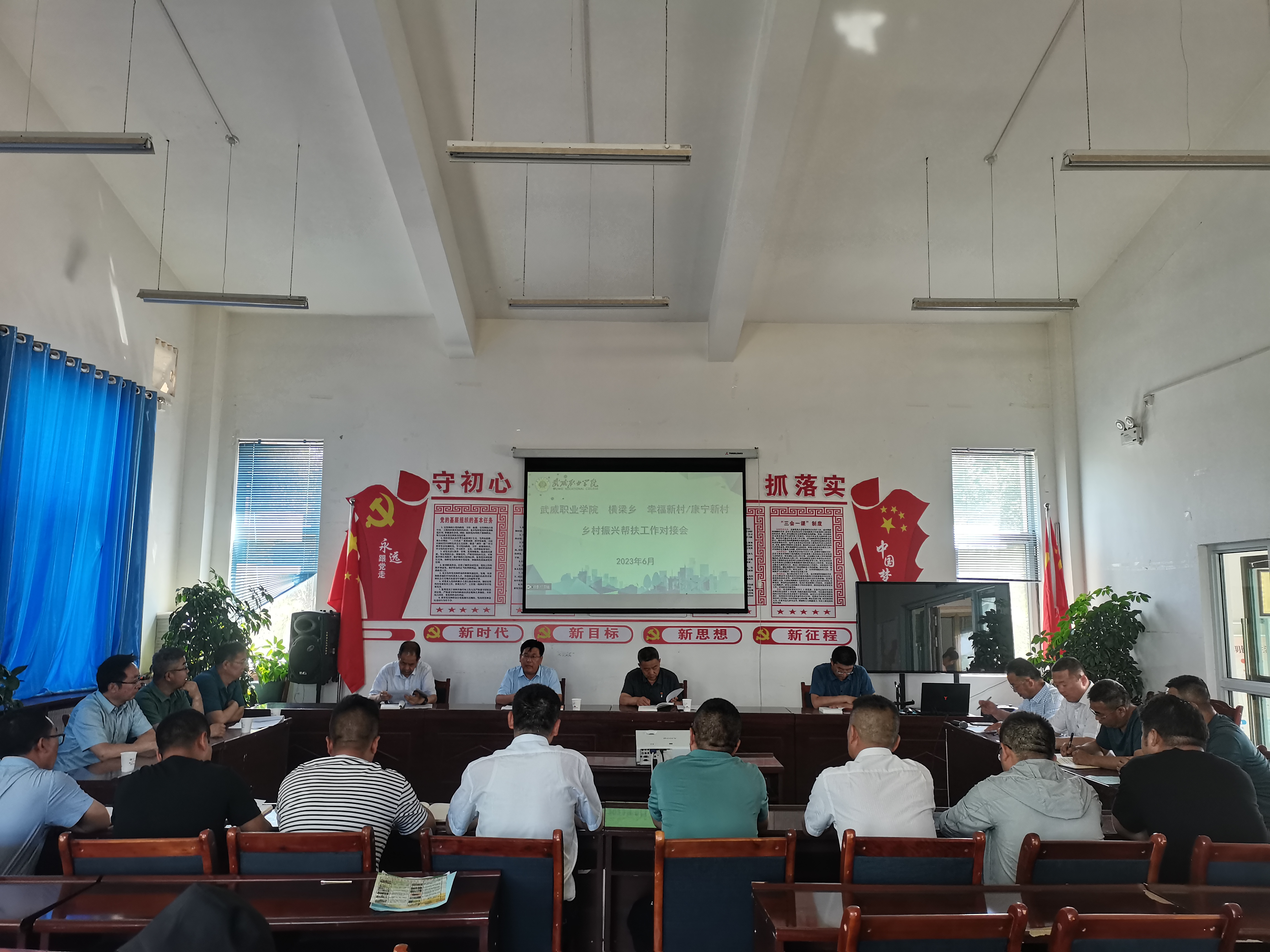 6月21日,學校專家團隊赴古浪綠洲小鎮(zhèn)召開鄉(xiāng)村振興幫扶工作推進會議。學校黨委書記、校長趙明教授,黨委副書記翟存祥教授,黨委委員、副校長張開禮教授,橫梁鄉(xiāng)黨委書記何文國,黨委副書記、鄉(xiāng)長張熹中,康寧新村黨支部書記兼主任劉建惠,幸福新村黨支部書記李文海出席會議,村兩委成員、學校相關部門負責人參加會議。
