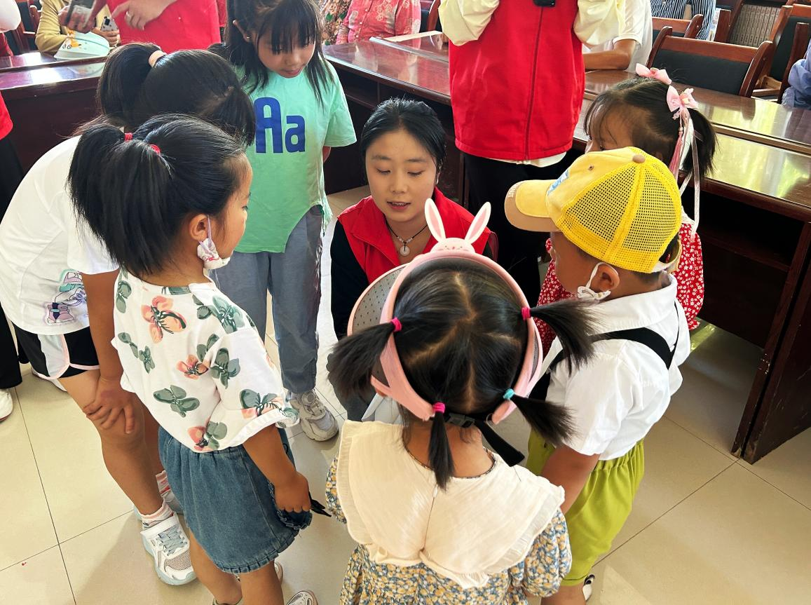 圖為實踐隊員與走訪地兒童進(jìn)行普通話趣味游戲