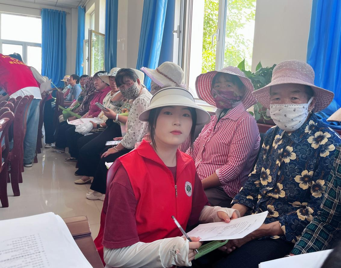 圖為實(shí)踐隊(duì)員對(duì)留守婦女普通話使用情況進(jìn)行調(diào)研