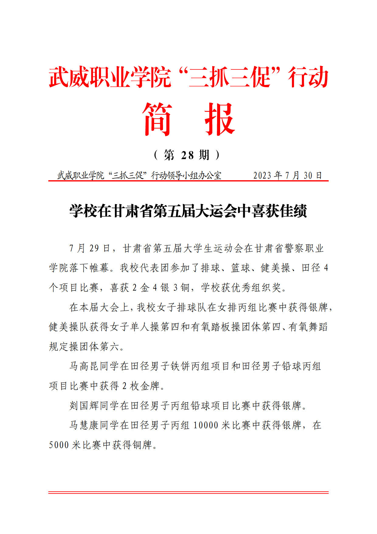 簡(jiǎn)報(bào)第28期:學(xué)校在甘肅省第五屆大運(yùn)會(huì)中喜獲佳績(jī)