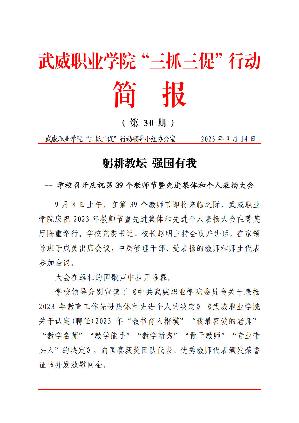 簡報(bào)第30期 躬耕教壇 強(qiáng)國有我