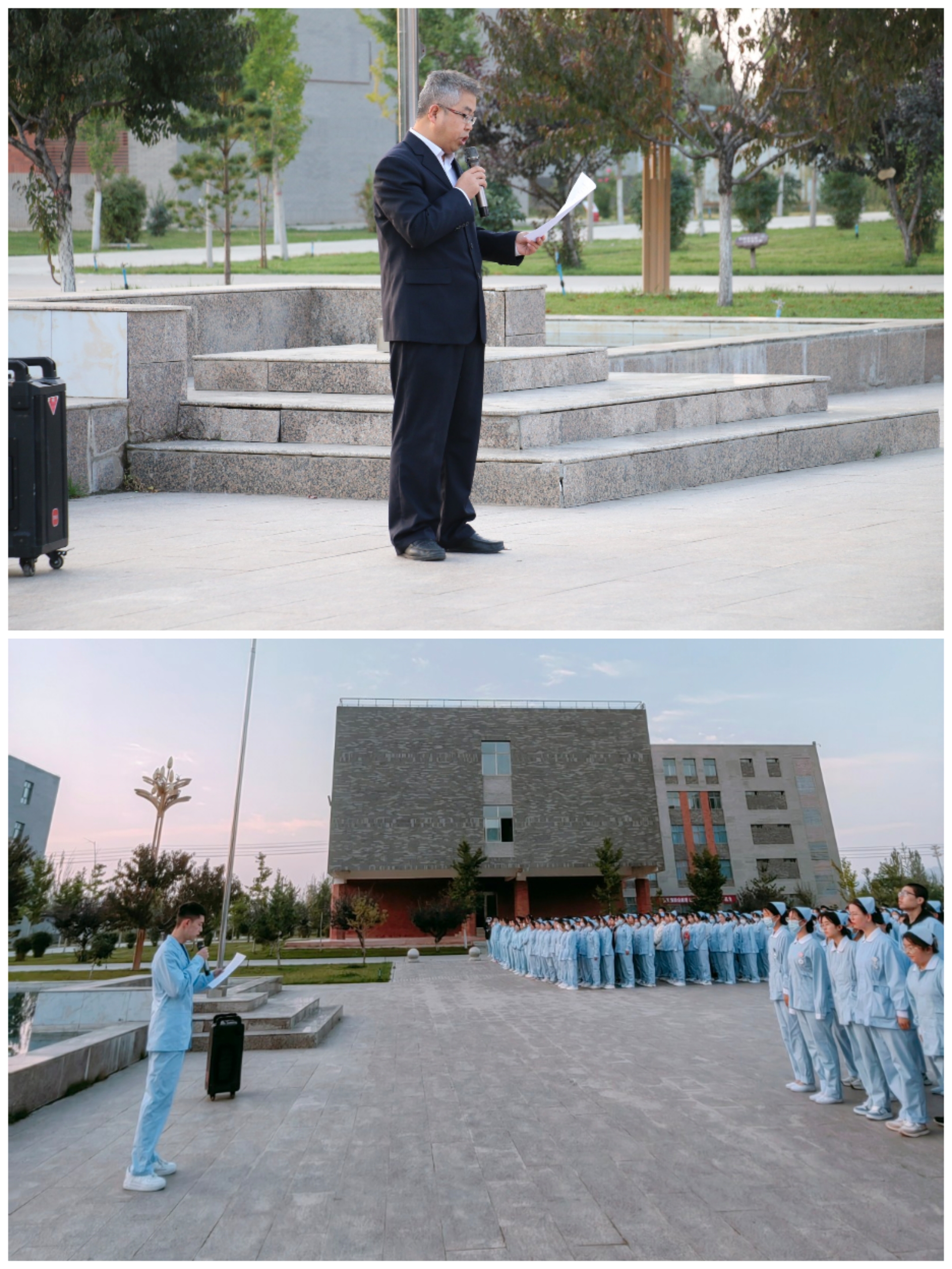 2022級學(xué)生代表戚凱以“堅(jiān)定理想信念,錘煉堅(jiān)實(shí)品格”為主題作國旗下演講,號召全體學(xué)生作為新時(shí)代的青年,要牢記初心使命,樹立遠(yuǎn)大理想,堅(jiān)定理想信念,錘煉品德修養(yǎng),努力成為具有扎實(shí)理論知識和實(shí)踐能力的高素質(zhì)護(hù)理專業(yè)人才,為社會(huì)、為祖國奉獻(xiàn)力量。