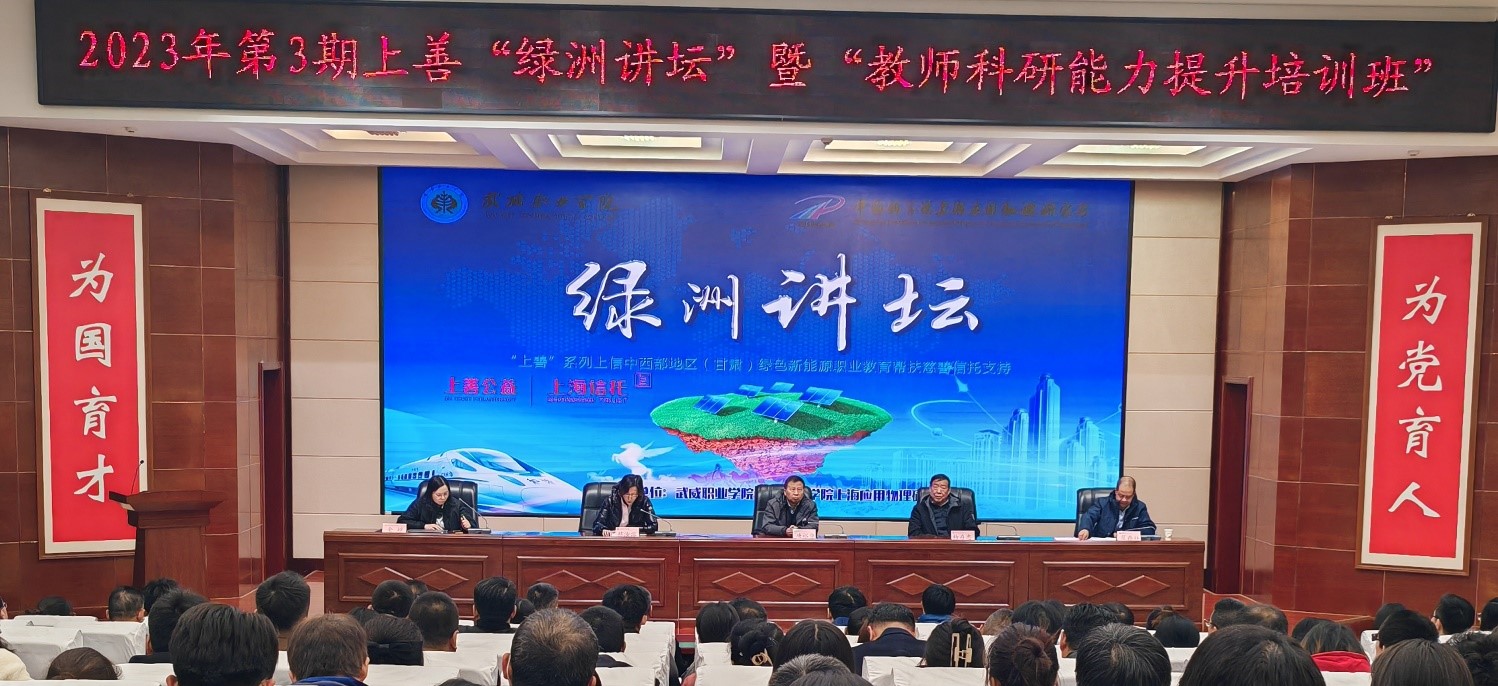 為進(jìn)一步深入學(xué)習(xí)貫徹黨的二十大精神,落實(shí)中共中央辦公廳、國務(wù)院辦公廳印發(fā)的《關(guān)于深化現(xiàn)代職業(yè)教育體系建設(shè)改革的意見》精神,切實(shí)開展“科教融匯、產(chǎn)教融合”,2023年11月10日,武威職業(yè)學(xué)院2023年第3期上善“綠洲講壇”學(xué)術(shù)報(bào)告會暨“教師科研能力提升培訓(xùn)班”在學(xué)校菁英廳開講。原中科院上海應(yīng)用物理研究所黨委書記唐裕華;上海應(yīng)物所高級教育顧問,中科低碳新能源技術(shù)學(xué)院院長楊存忠教授;“上善”慈善信托公司總經(jīng)理蔡汝溶;核工業(yè)第八研究所王伊馨博士、王夢千博士、何炳余博士、王后全博士;上海應(yīng)物所副研究員,中科低碳新能源技術(shù)學(xué)院院長助理金嬋博士;全體在家校領(lǐng)導(dǎo)出席此次報(bào)告會,教師代表共200人參會,此次報(bào)告會由武威職業(yè)學(xué)院黨委副書記翟存祥教授主持。