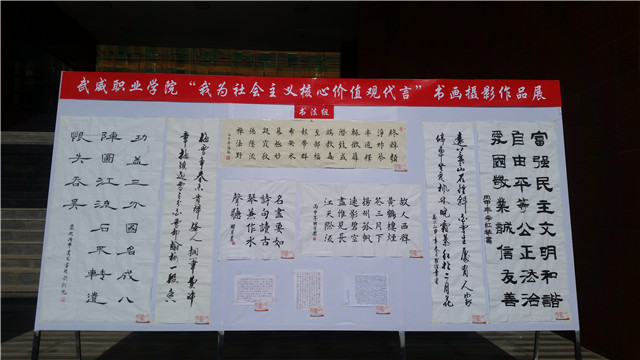本次大賽自4月啟動以來,共收到來自全院學(xué)生的370余件作品,分為軟筆書法、硬筆書法、繪畫、攝影、手工五大類。經(jīng)過篩選有137件作品進入復(fù)賽,作品緊扣社會主義核心價值觀主題,以生動的藝術(shù)形象、藝術(shù)形式展示社會主義核心價值觀。院團委邀請人文教育藝術(shù)系的藍(lán)明東、祁小剛、趙向峰、薛媛、蘆曉鵬教師組成評審小組,對參賽作品分組評審,評選出一等獎4名,二等獎7名,三等獎9名,優(yōu)秀獎15名。獲獎作品在學(xué)院大學(xué)生活動中心、武威職業(yè)學(xué)院團青微信公眾平臺同時展出。