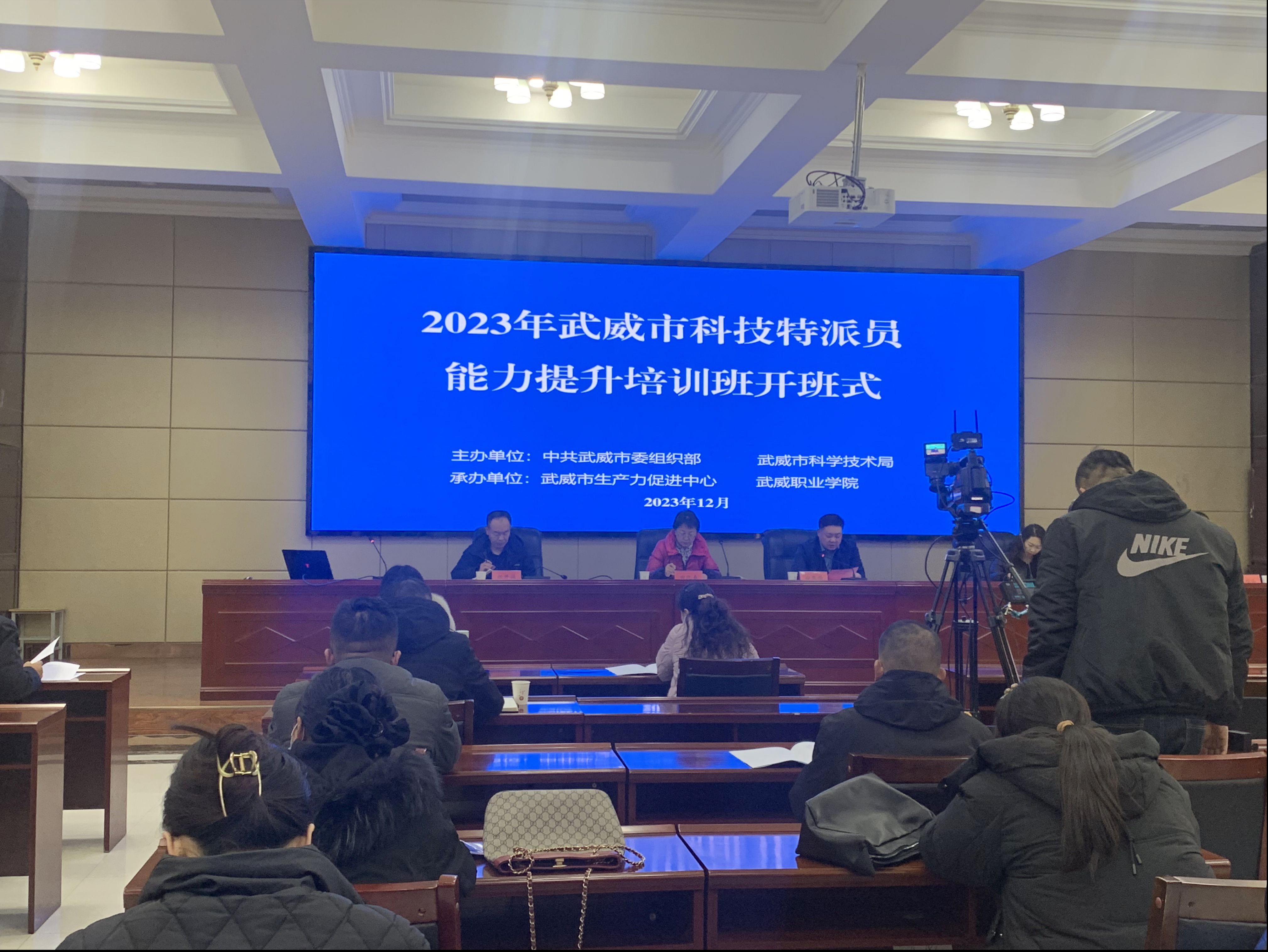 12月18日下午,武威市科技特派員能力提升班在武威職業(yè)學院行樹樓北側報告廳順利開班。市科技局副局長寧攀學同志,武威職業(yè)學院黨委委員、副校長田迎春同志,市科技局生產力促進中心主任方青春同志等出席開班儀式。本次培訓采用“線上+線下”的方式進行,武威市三縣一區(qū)的44名科技特派員參加現(xiàn)場培訓,全市500名科技特派員參加線上培訓。