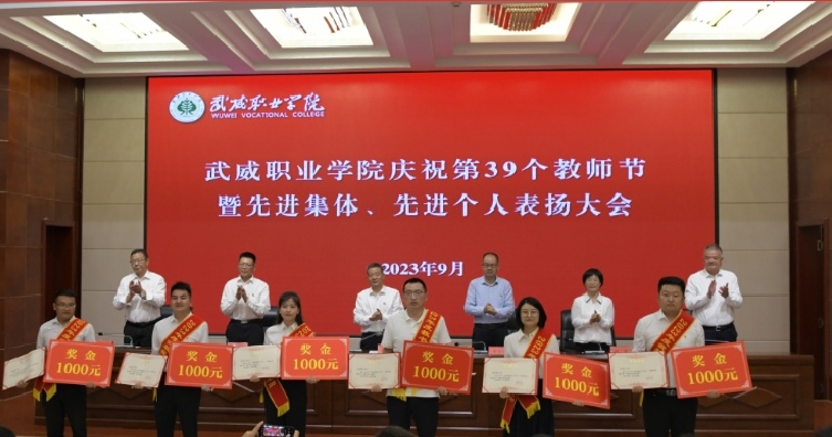 學(xué)校領(lǐng)導(dǎo)分別宣讀了《中共武威職業(yè)學(xué)院委員會(huì)關(guān)于表?yè)P(yáng)2023年教育工作先進(jìn)集體和先進(jìn)個(gè)人的決定》《武威職業(yè)學(xué)院關(guān)于認(rèn)定(聘任)2023年“教書育人楷?!薄拔易钕矏?ài)的老師”“教學(xué)名師”“教學(xué)能手”“教學(xué)新秀”“骨干教師”“專業(yè)帶頭人”的決定》,向國(guó)獎(jiǎng)獲獎(jiǎng)團(tuán)隊(duì)代表、優(yōu)秀教師代表頒發(fā)榮譽(yù)證書并發(fā)放慰問(wèn)金。