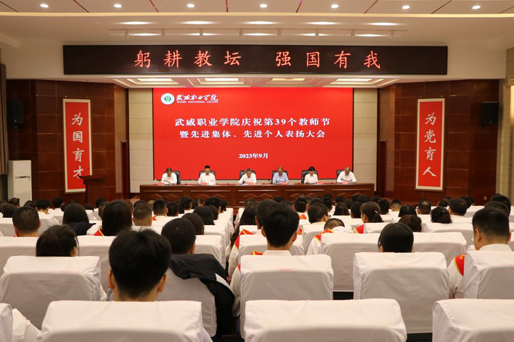 9月8日上午,在第39個(gè)教師節(jié)即將來(lái)臨之際,武威職業(yè)學(xué)院慶祝2023年教師節(jié)暨先進(jìn)集體和先進(jìn)個(gè)人表?yè)P(yáng)大會(huì)在菁英廳隆重舉行。學(xué)院黨委書記、校長(zhǎng)趙明主持會(huì)議并講話,在家領(lǐng)導(dǎo)班子成員出席會(huì)議,中層管理干部、受表?yè)P(yáng)的教師和師生代表參加會(huì)議。