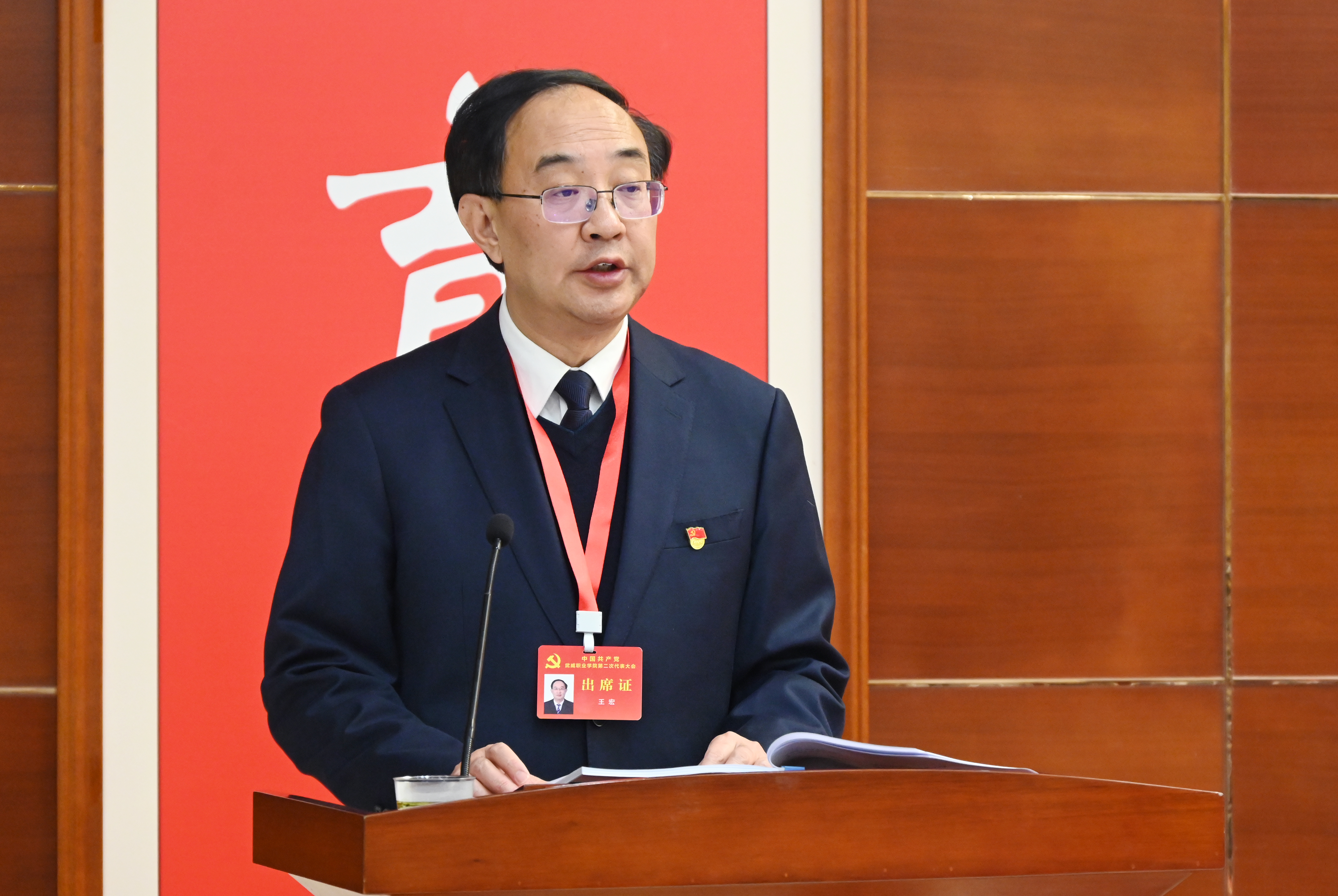 王宏同志代表中國共產(chǎn)黨武威職業(yè)學(xué)院第一屆委員會向大會作報告