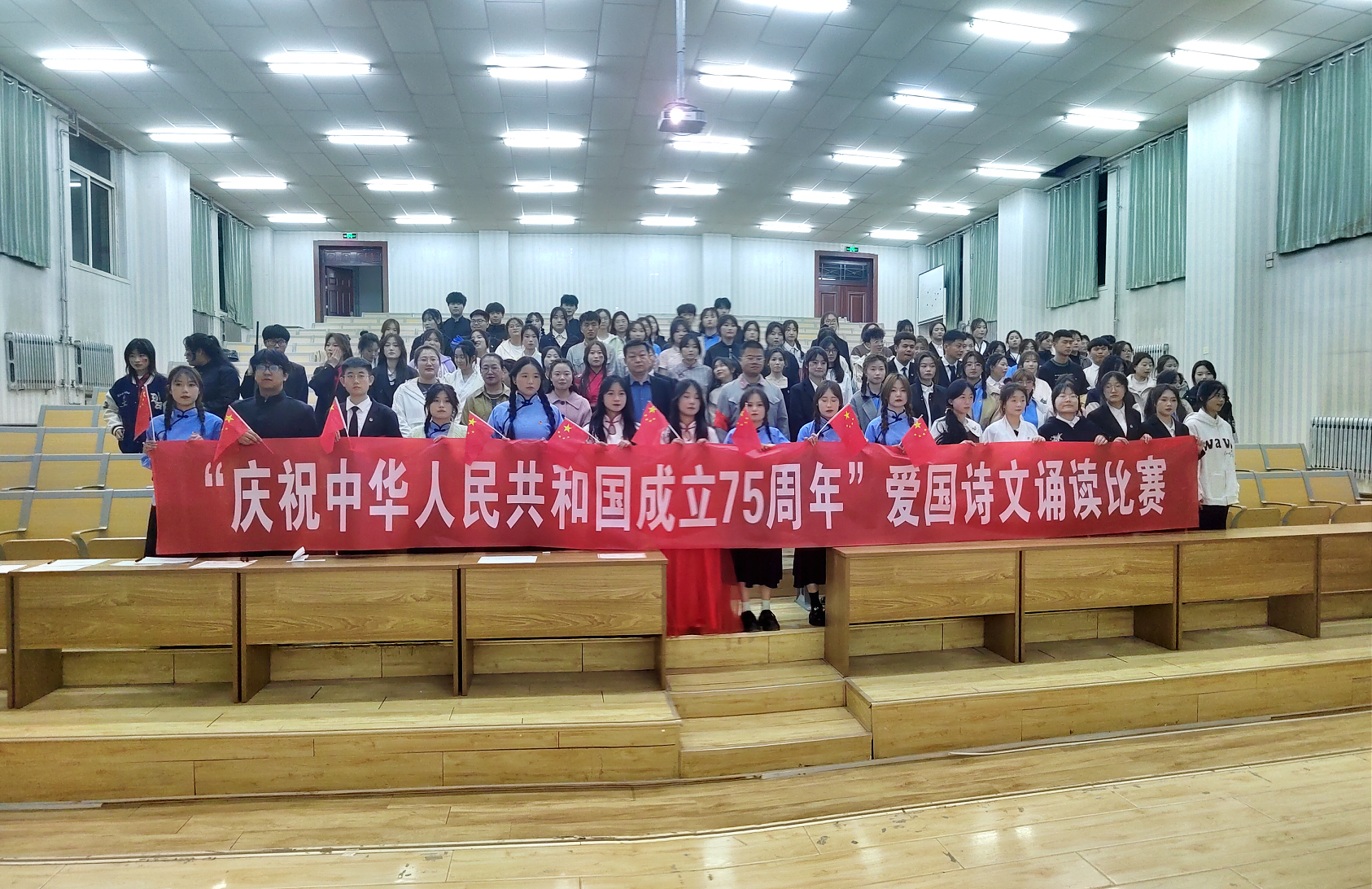 為慶祝中華人民共和國成立75周年,3月28日,藥學(xué)院在正德廳舉行了以“慶祝中華人民共和國成立75周年”為主題的愛國詩文誦讀比賽。全院共13個參賽隊參加,藥學(xué)院學(xué)生工作負(fù)責(zé)人魏曙光、團委書記楊琨、輔導(dǎo)員魯倩林、全體班主任及150余名學(xué)生代表共同觀看了比賽。