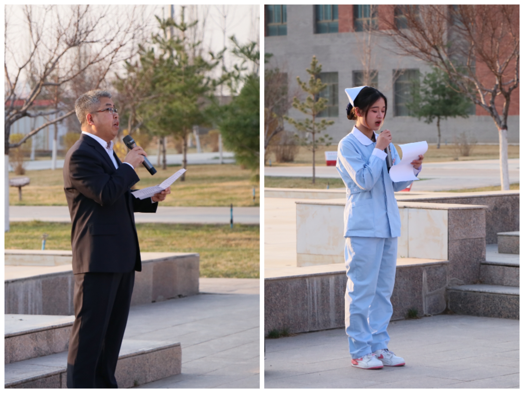 張建輝在講話中表示,清明節(jié)是我國(guó)傳統(tǒng)的祭祖節(jié)日,也是緬懷先烈、感恩先人的重要日子,全體師生要銘記先烈們的英勇事跡,傳承他們大無(wú)畏精神,感恩他們的無(wú)私付出。張建輝強(qiáng)調(diào),作為護(hù)理專業(yè)的學(xué)生,同學(xué)們更應(yīng)當(dāng)懂得感恩,感恩父母的養(yǎng)育之恩,老師的教誨之恩,感恩學(xué)校的培養(yǎng)之恩,感恩國(guó)家的大愛之恩,并且將感恩內(nèi)化于心,外化于行、知行合一,用自己的實(shí)際行動(dòng)為他人和社會(huì)創(chuàng)造價(jià)值。