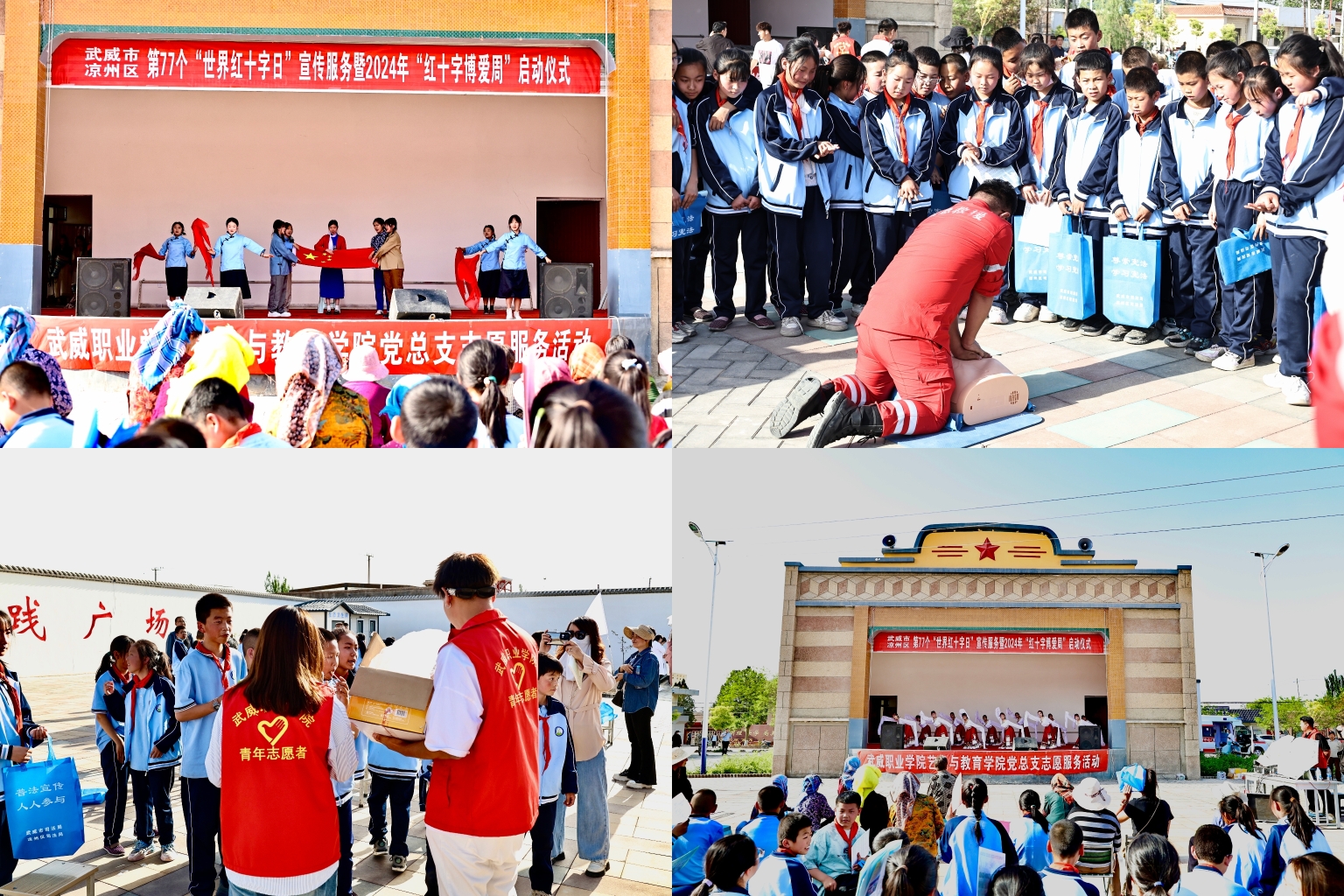 為紀念第77個“世界紅十字日”,進一步弘揚“人道、博愛、奉獻”的紅十字精神,5月8日下午,武威職業(yè)學院藝術與教育學院50名志愿者赴涼州區(qū)清水鎮(zhèn)張清村開展“世界紅十字日”宣傳服務活動。