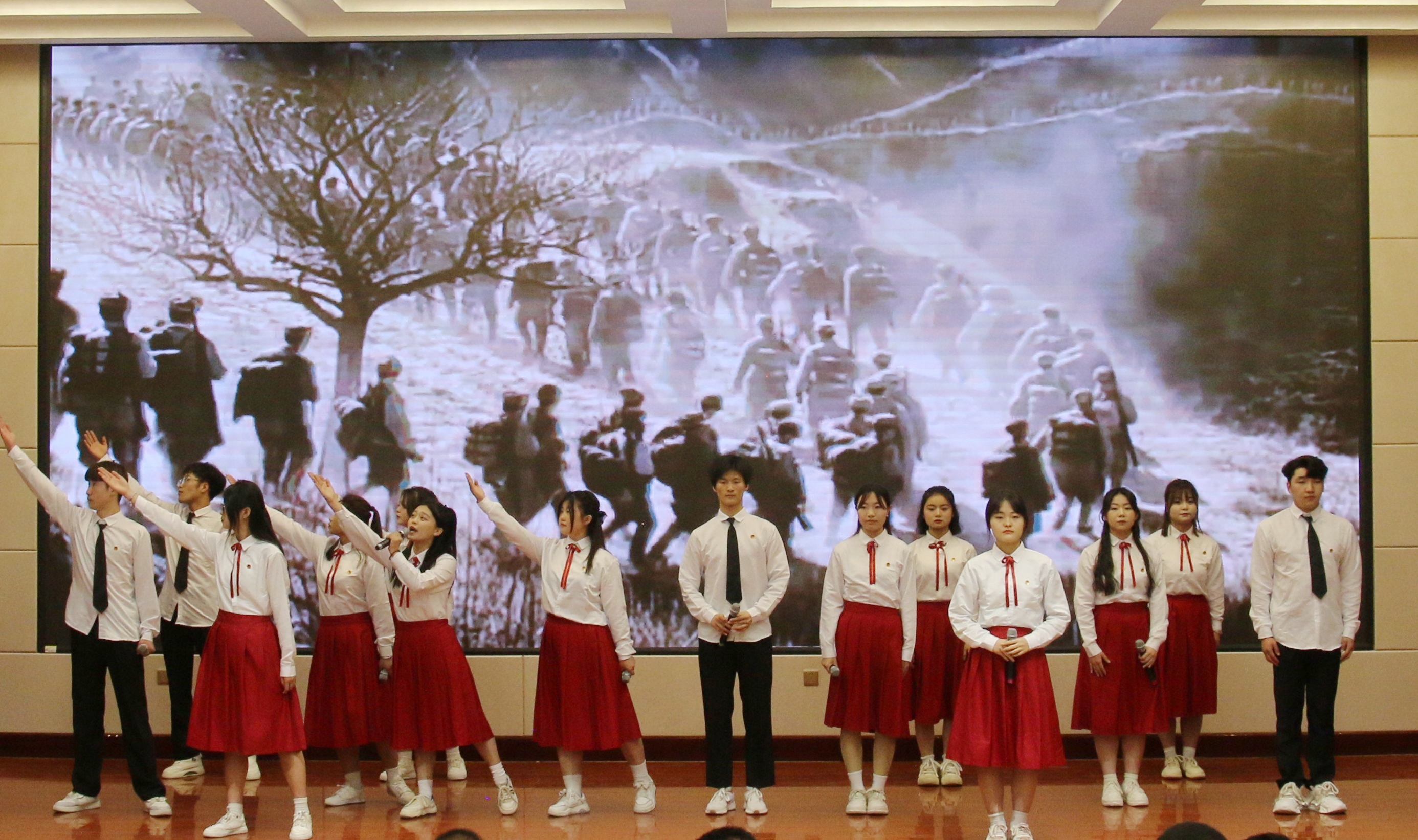 誦讀之聲不絕于耳,誦出青年學(xué)子對(duì)新時(shí)代的期許;強(qiáng)國(guó)之音擲地有聲,頌出青年學(xué)子的使命感與責(zé)任感。相信武職學(xué)子必將以青春熱忱予拼搏以力量,以家國(guó)情懷賦前進(jìn)以方向,永葆青春底色,以最昂揚(yáng)的姿態(tài)為祖國(guó)獻(xiàn)禮,以?shī)^斗之我、追夢(mèng)之我,全力為學(xué)校高質(zhì)量發(fā)展注入青春動(dòng)能,在中國(guó)式現(xiàn)代化建設(shè)中挺膺擔(dān)當(dāng)!