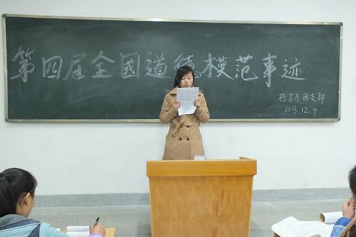 藥學(xué)系團(tuán)總支于2013年12月9日組織全體同學(xué)深入學(xué)習(xí)了“第四屆全國(guó)道德模范事跡”,一個(gè)個(gè)動(dòng)人的事跡印入耳畔,他們或充滿愛心、助人為樂,或見義勇為、舍身忘死,或敬老愛親、血脈情深。