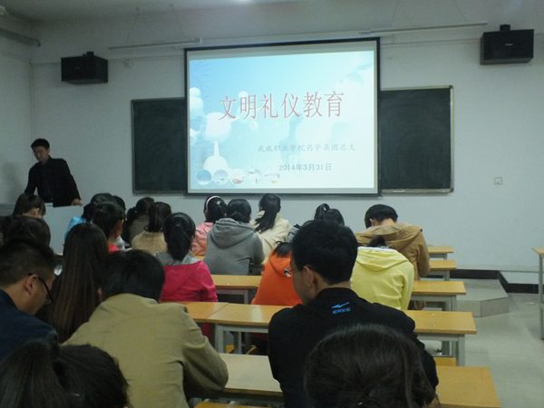 3月31日晚,在藥學(xué)系黨總支的指導(dǎo)下,藥學(xué)系團(tuán)總支組織各班共青團(tuán)員共計(jì)80余人在2號(hào)教學(xué)樓614教室開(kāi)展了文明禮儀教育活動(dòng)。